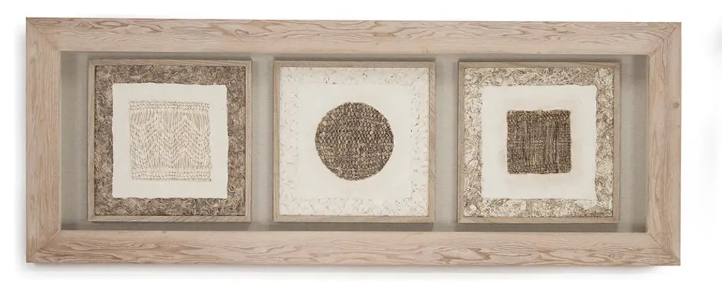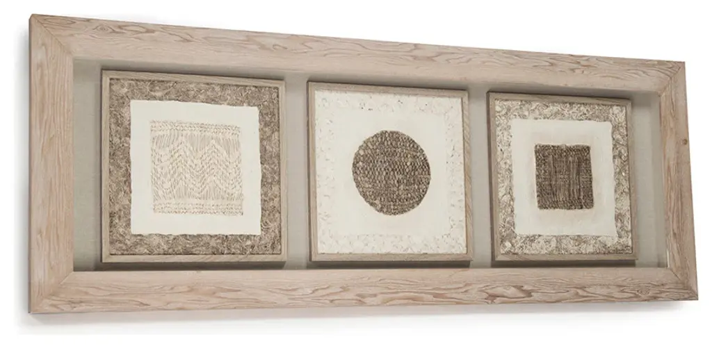 Assorted patterns and textured paper artwork on light brown background. Framed in neutral fir wood.Zentique combines unique designs with high-end materials to bring you the very best home decor in the business.When you order a product engineered and manufactured by Zentique, you''re guaranteed to get a product that is built to last for years and years to come. This product will come in ship-safe packaging materials and will be sure to impress!DimensionsLength: 63 in.Width: 2 in.Height: 23.5 in.Some assembly required: No