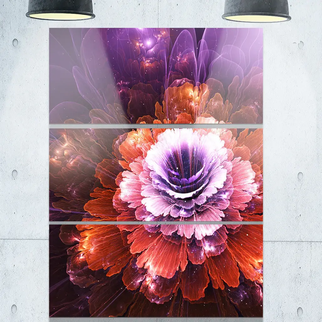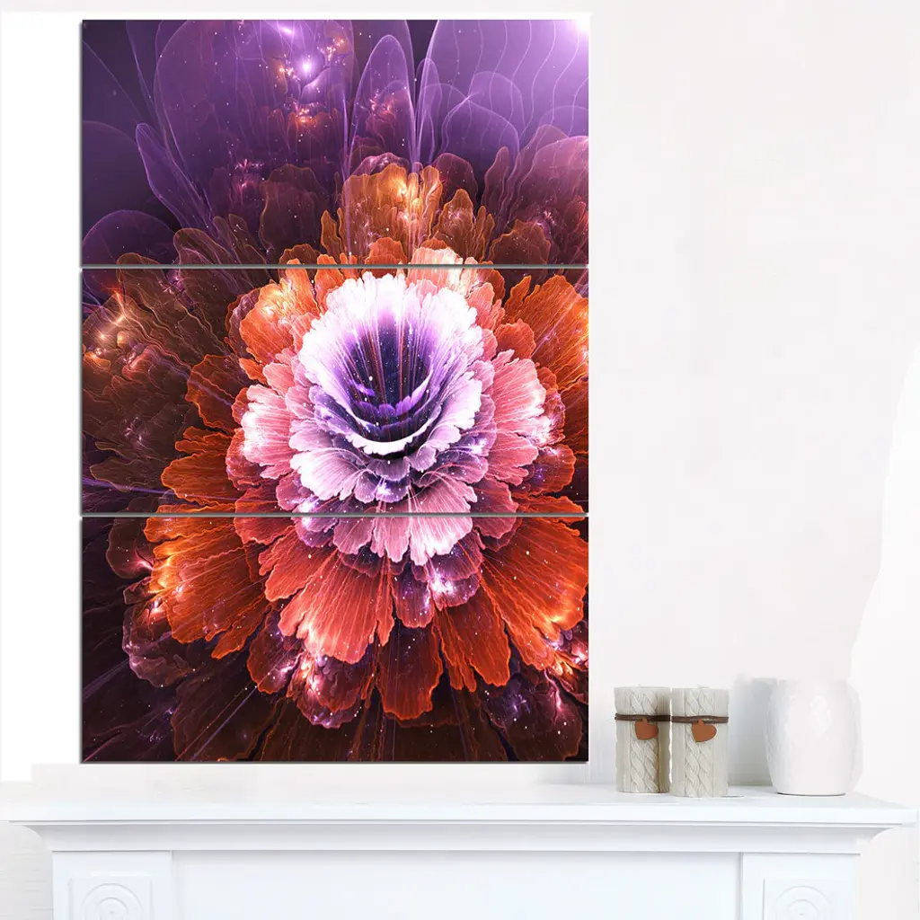"Abstract Pink Fractal Flower" Digital Metal Wall Art, 3 Panels, 28"x36"