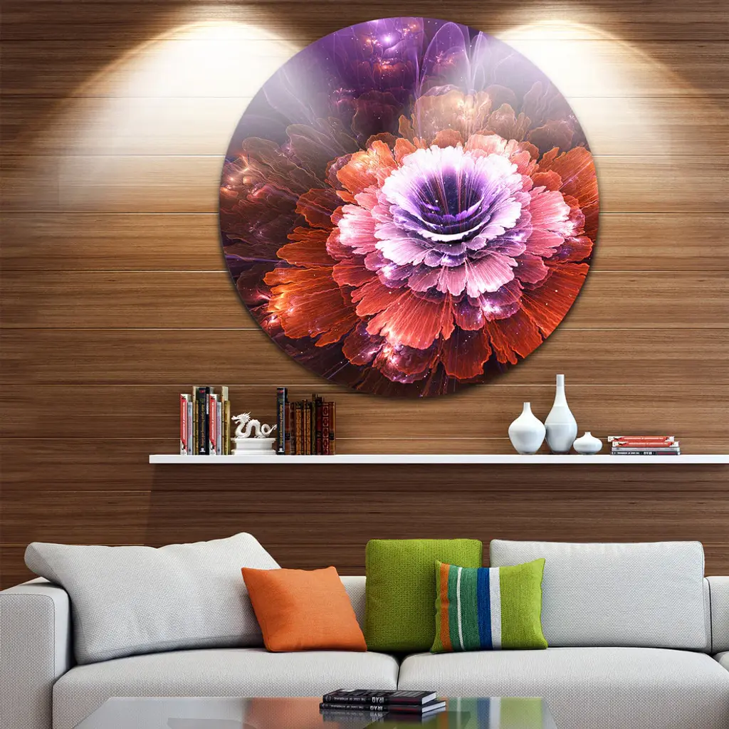 Abstract Pink Fractal Flower, Floral Digital Round Metal Wall Art, 23"