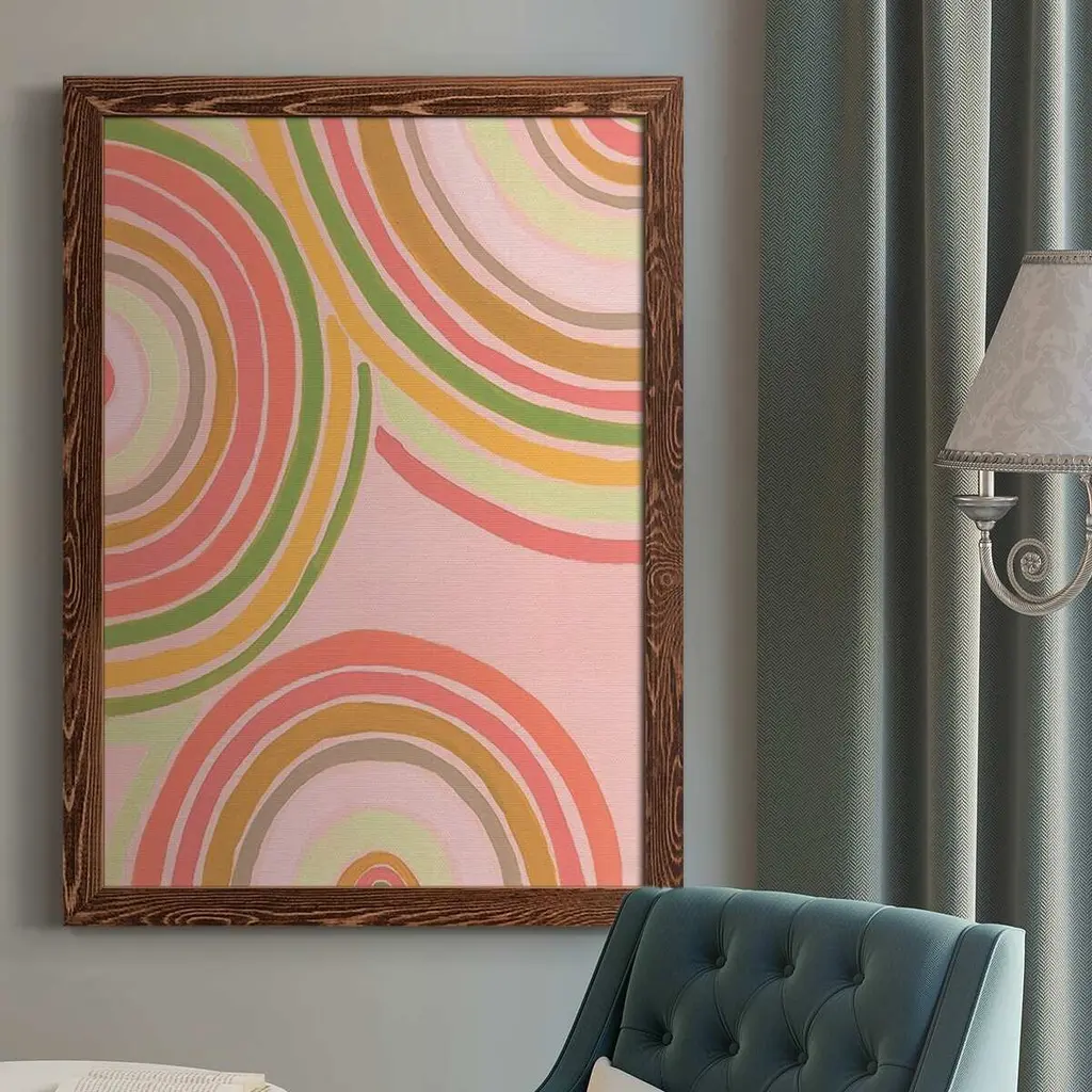 Abstract Rainbow I Premium Framed Print - Ready to Hang A Premium Framed Print created to last. Framed in distressed wood and available in an array of sizes and colors Featuring a beveled a solid wood stretcher bar, each piece comes ready to hand 4 SIZES AVAILABLE 30.5''X42.5'' - Overall Size 26.5'X36.5'' - Overall Size 22.5''x30.5'' - Overall Size 18.5''x24.5'' - Overall Size Each piece is made to order. Each piece comes with hanging hardware. Made in the USA Ready to Hang