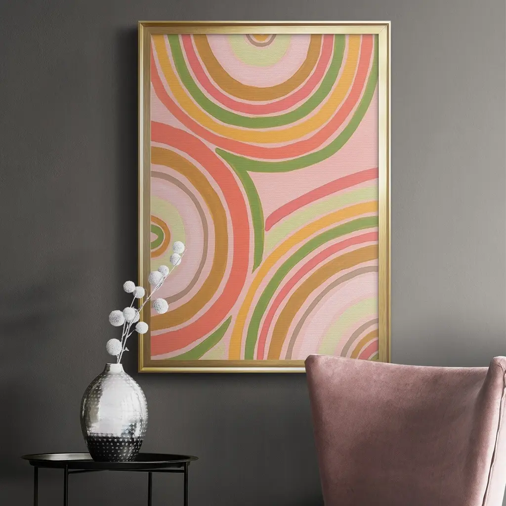Abstract Rainbow II Premium Framed Print - Ready to Hang A Premium Framed Print created to last. Framed in distressed wood and available in an array of sizes and colors Featuring a beveled a solid wood stretcher bar, each piece comes ready to hand 4 SIZES AVAILABLE 30.5''X42.5'' - Overall Size 26.5'X36.5'' - Overall Size 22.5''x30.5'' - Overall Size 18.5''x24.5'' - Overall Size Each piece is made to order. Each piece comes with hanging hardware. Made in the USA Ready to Hang