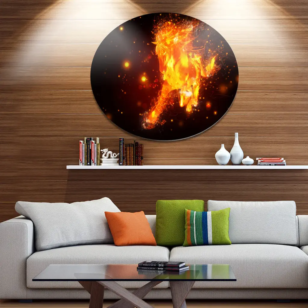Abstract Running Fire Horse, Animal Round Wall Art, 36"