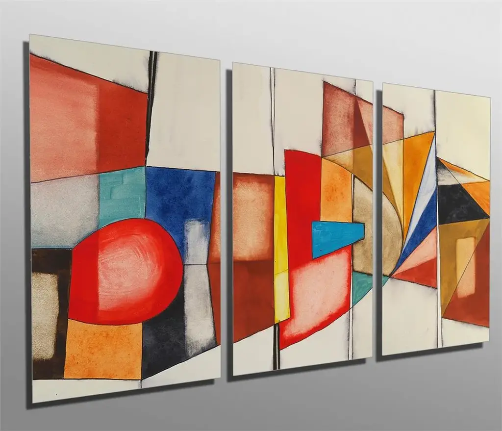 Abstract Shapes Art, Metal Print Wall Art, 3 Panel Split, Triptych, 72x36