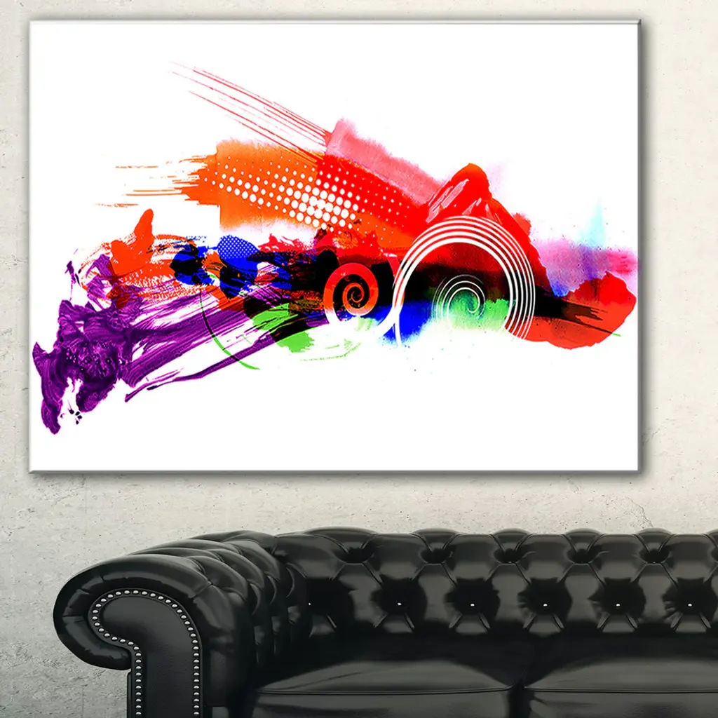 The Abstract Splashes of Colors canvas art print is sure to make an impression on anyone who sees it. This artwork is gallery wrapped around a 1-inch solid wood frame and arrives carefully packaged and entirely ready to hang on the wall. Design Art only uses the highest resolution and pigments to ensure a crisp colorful print that is never faded or pixelated. This artwork is sure to be a conversation starter in any home or office.