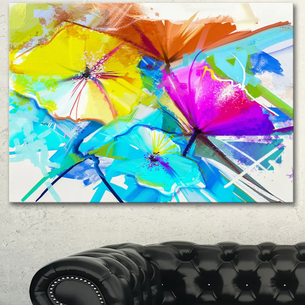 Abstract Spring Flowers Still Life, Extra Large Floral Wall Art, 60"x28"
