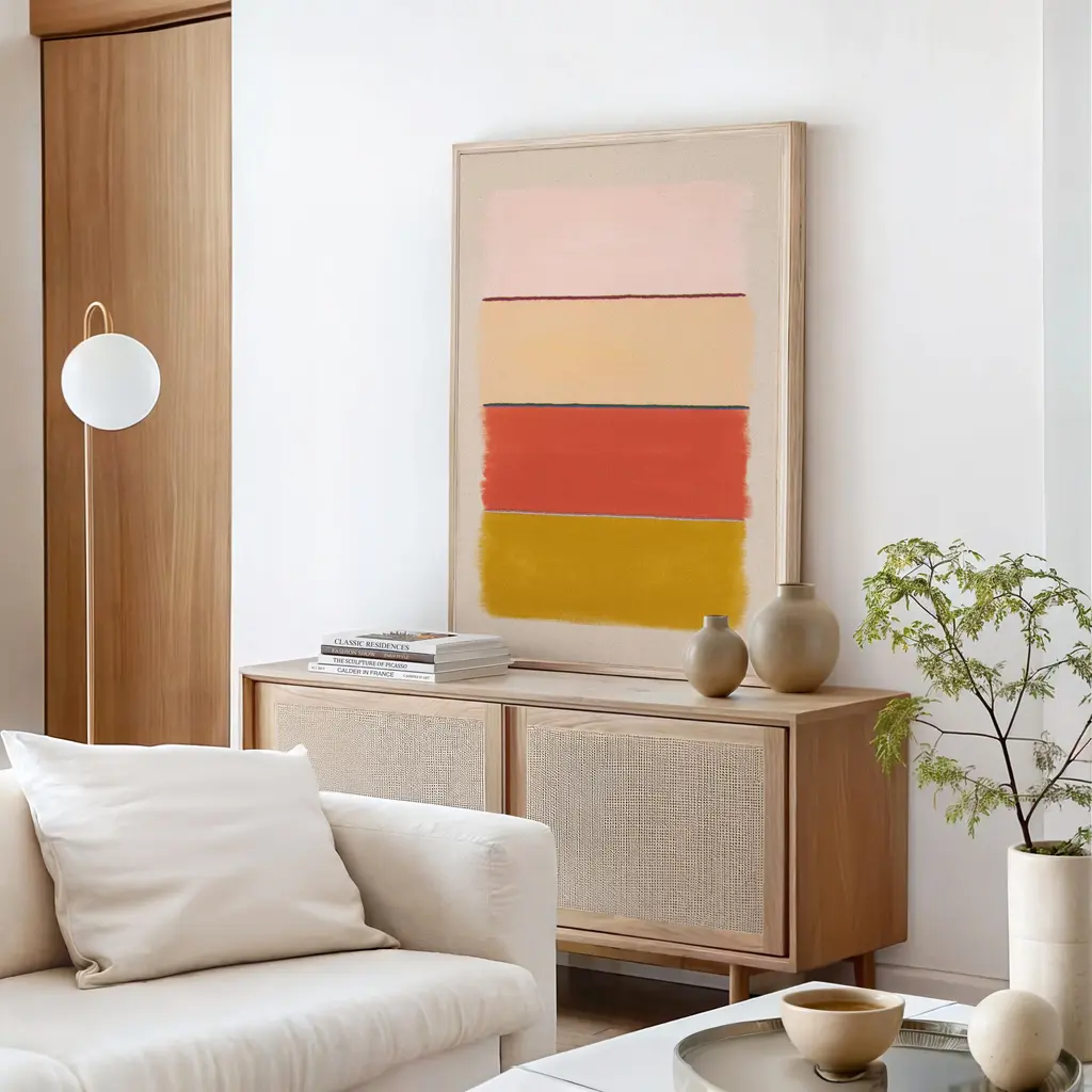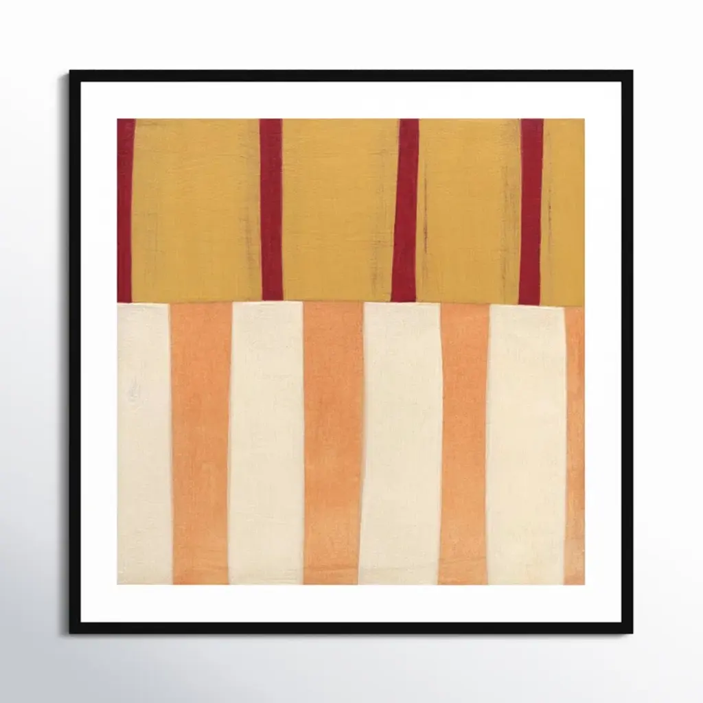 Abstract Stripes Fine Art Print, Pink, Gold, Mustard Yellow, 38 X 30 Print In Wood Frame