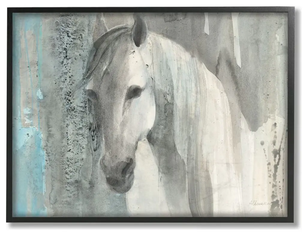 Abstract Textured Horse Portrait Grey Yellow Painting,1pc, Each 11 X 14