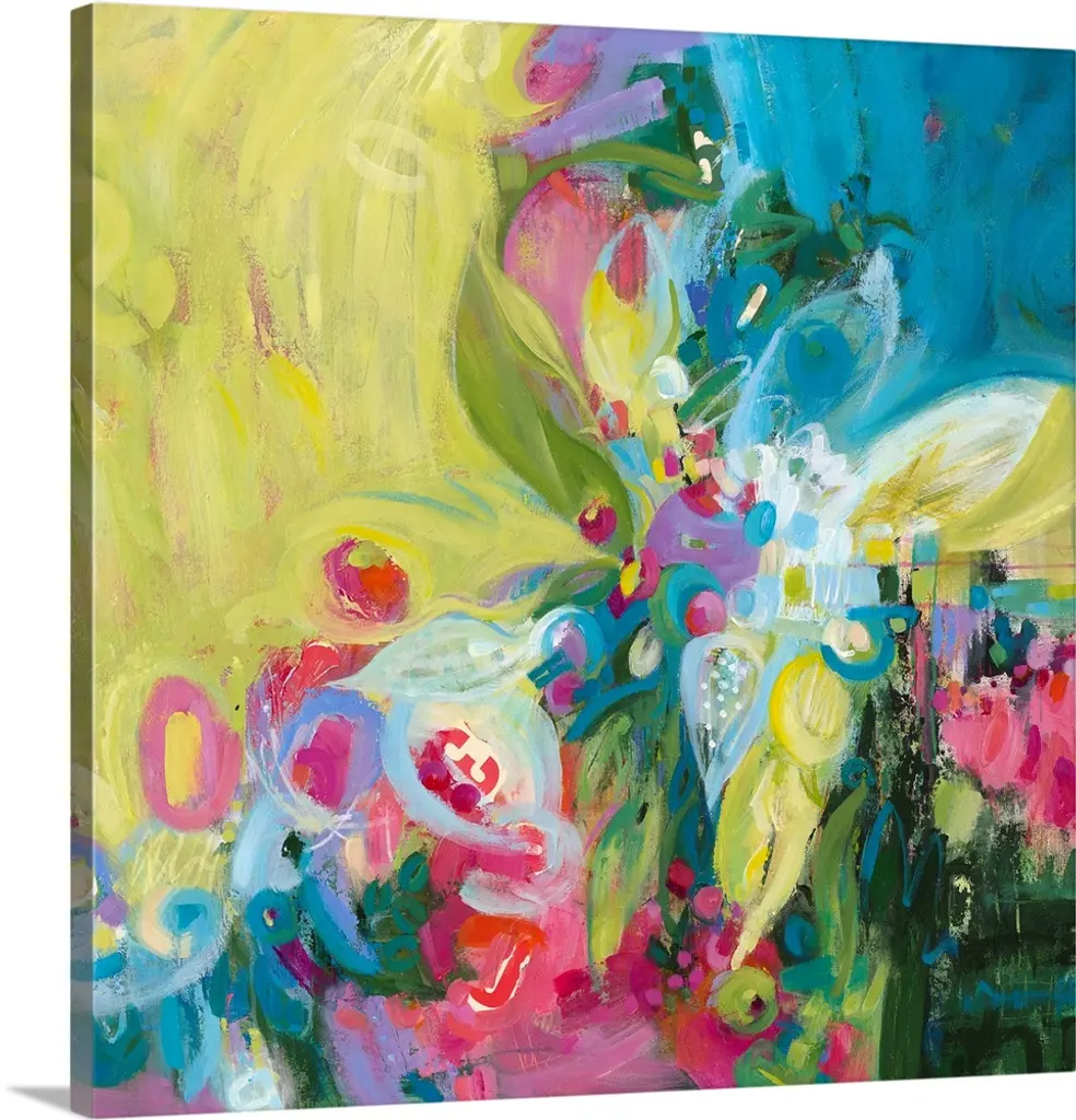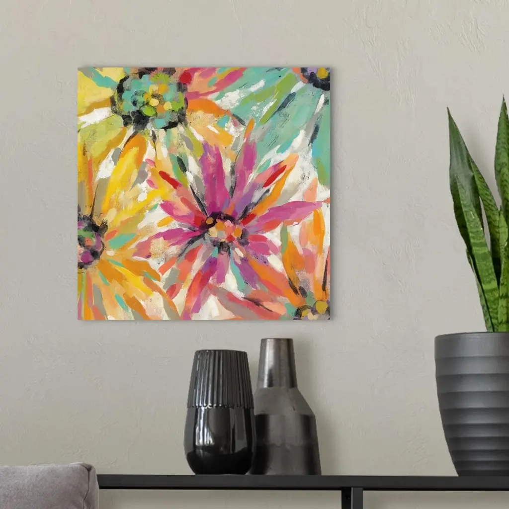 Contemporary painting of vibrant colorful flowers.
