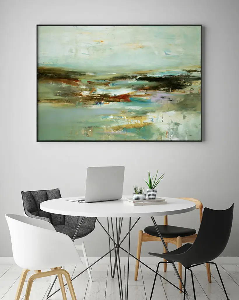 Your ready to hang artwork is printed on canvas then stretched and mounted to a 2-inch thick - hand stained black wood frame. Arrives at your door complete with an easy to use self-leveling hangking kit.