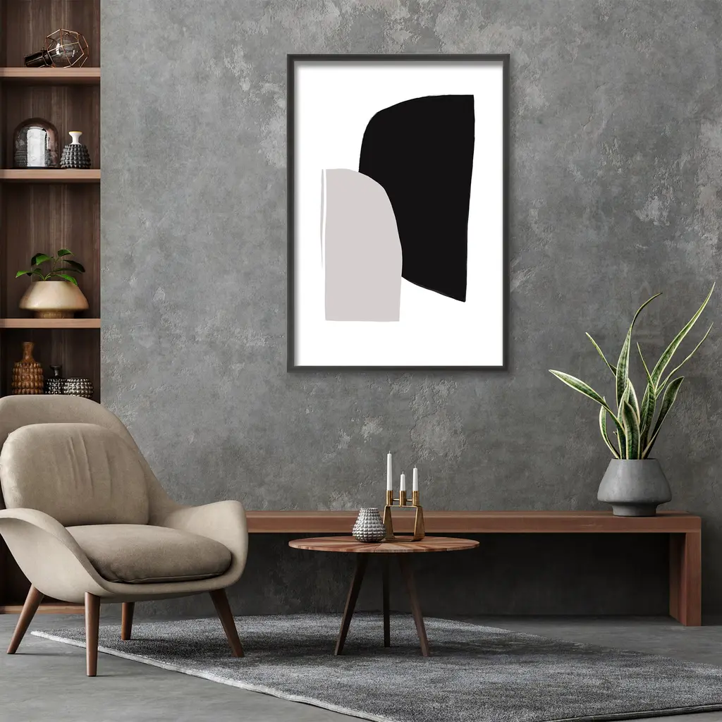 Infuse any space with the essence of this trendy framed print wall art titled "Abstractions No 5" by Uplusmestudio . The piece features abstract black and gray shapes over a white background that will complement any modern space. Handcrafted in Chattanooga, Tennessee, by Ready2HangArt using a locally sourced artist print, finished with a rear hanger for simple installation.