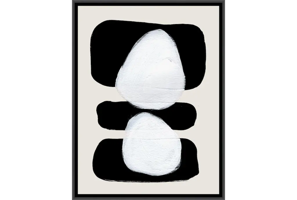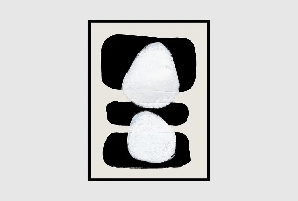 Infuse any space with the essence of this trendy framed print wall art titled "Abstractions No 5" by Uplusmestudio . The piece features abstract black and gray shapes over a white background that will complement any modern space. Handcrafted in Chattanooga, Tennessee, by Ready2HangArt using a locally sourced artist print, finished with a rear hanger for simple installation.