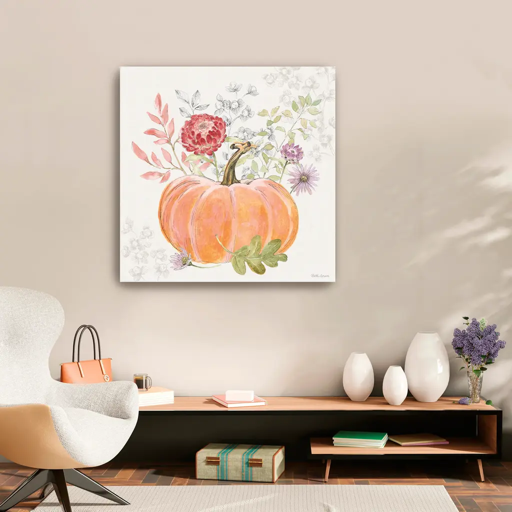 Transform any space into a fall retreat with a pumpkin canvas print that blends harvest motifs and seasonal warmth. A charming visual reminder of cozy gatherings and crisp autumn days. Our Gallery Wrap Canvas Prints are proudly assembled with high quality materials in California, USA. Each piece is printed on a thick, archival grade canvas using Giclee technology. It is then hand-stretched by our experienced artisans over solid wood bars, which will not warp over time. The final product is a piece personally crafted for you to confidently display on your wall. Care and Assembly: Ensure that the location of your piece has little to no exposure to heat, sunlight, and moisture. Wipe clean, only if needed. Each piece includes a sawtooth hanger to hang on your wall horizontally.