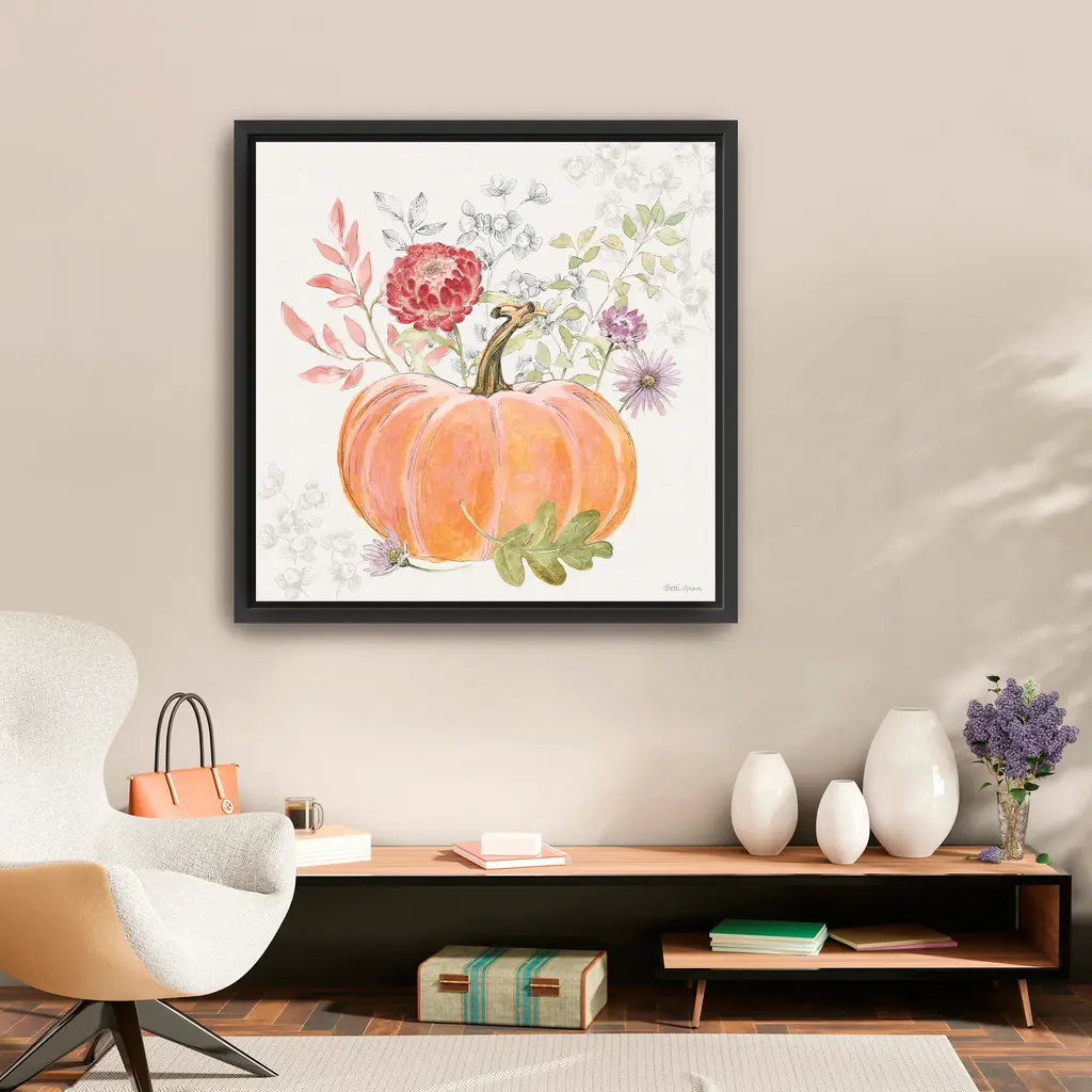 Transform any space into a fall retreat with a pumpkin canvas print that blends harvest motifs and seasonal warmth. A charming visual reminder of cozy gatherings and crisp autumn days. Our Gallery Wrap Canvas Prints are proudly assembled with high quality materials in California, USA. Each piece is printed on a thick, archival grade canvas using Giclee technology. It is then hand-stretched by our experienced artisans over solid wood bars, which will not warp over time. The final product is a piece personally crafted for you to confidently display on your wall. Care and Assembly: Ensure that the location of your piece has little to no exposure to heat, sunlight, and moisture. Wipe clean, only if needed. Each piece includes a sawtooth hanger to hang on your wall horizontally.