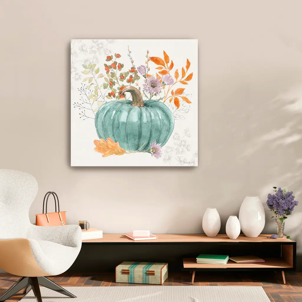 Transform any space into a fall retreat with a pumpkin canvas print that blends harvest motifs and seasonal warmth. A charming visual reminder of cozy gatherings and crisp autumn days. Our Gallery Wrap Canvas Prints are proudly assembled with high quality materials in California, USA. Each piece is printed on a thick, archival grade canvas using Giclee technology. It is then hand-stretched by our experienced artisans over solid wood bars, which will not warp over time. The final product is a piece personally crafted for you to confidently display on your wall. Care and Assembly: Ensure that the location of your piece has little to no exposure to heat, sunlight, and moisture. Wipe clean, only if needed. Each piece includes a sawtooth hanger to hang on your wall horizontally.