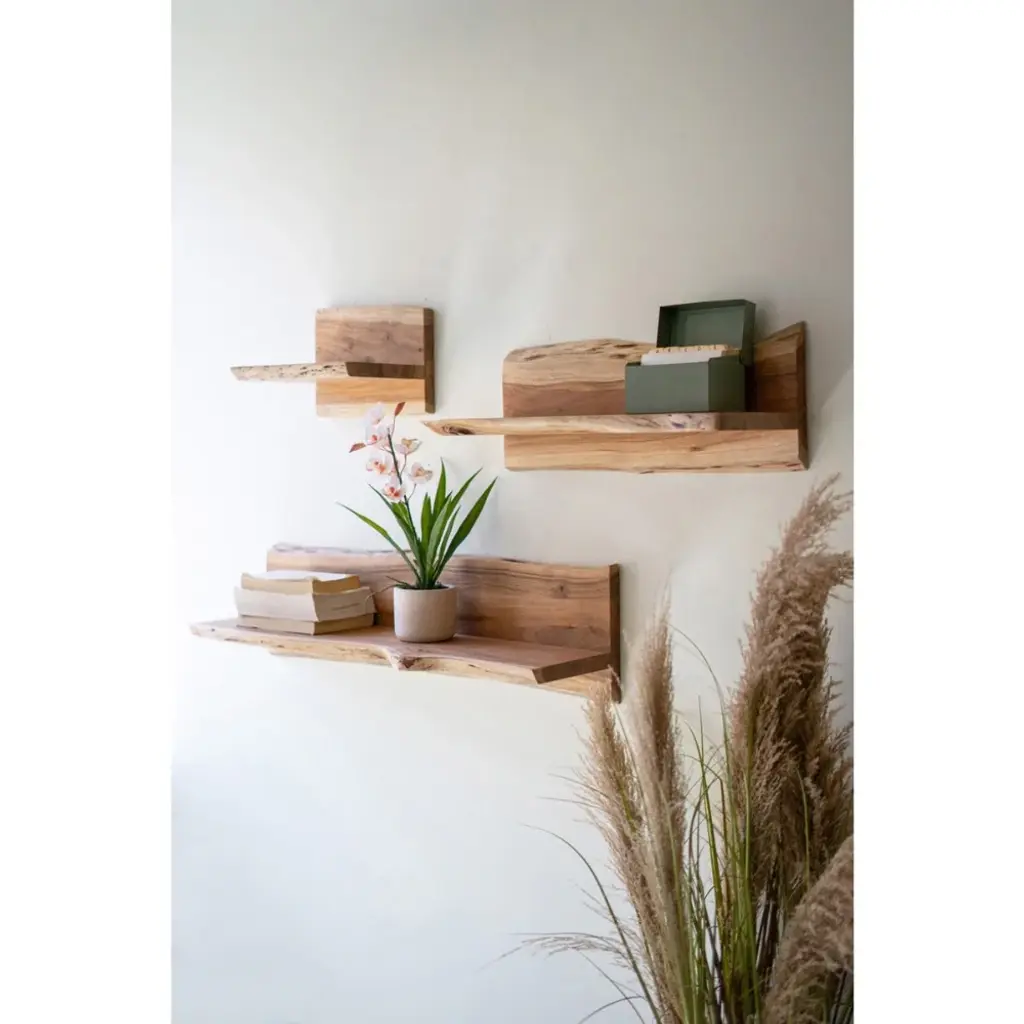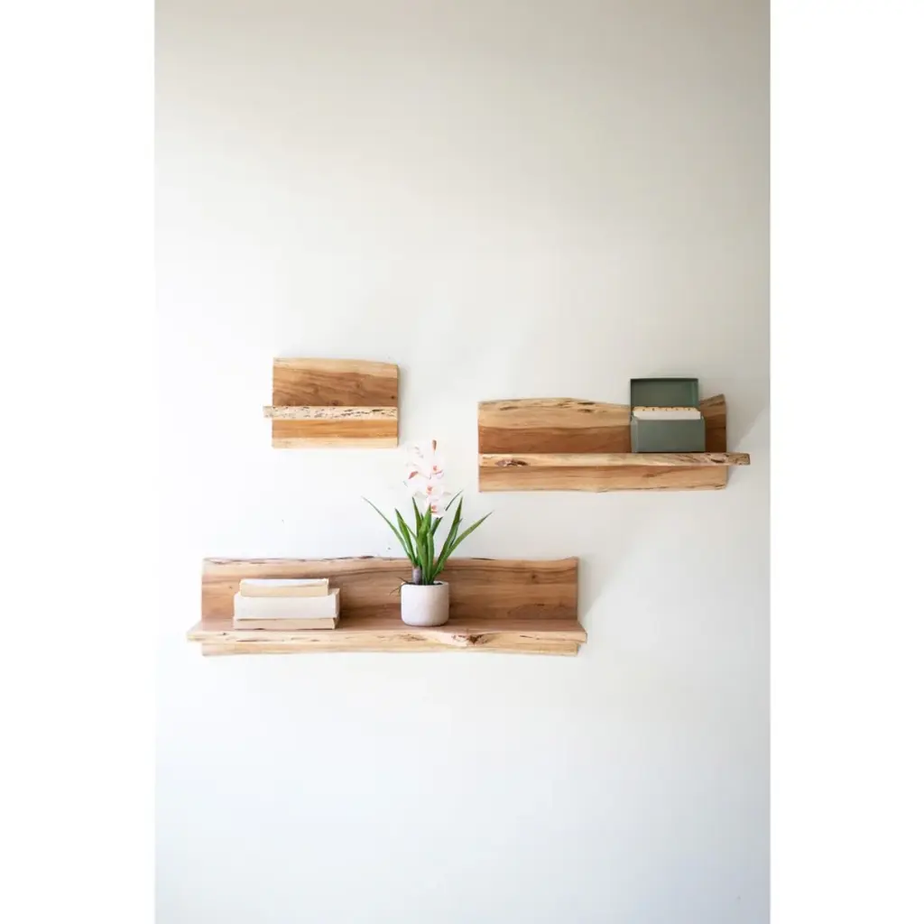 Acacia Wood Floating Wall Shelves (Set Of 3)