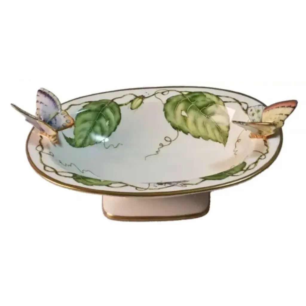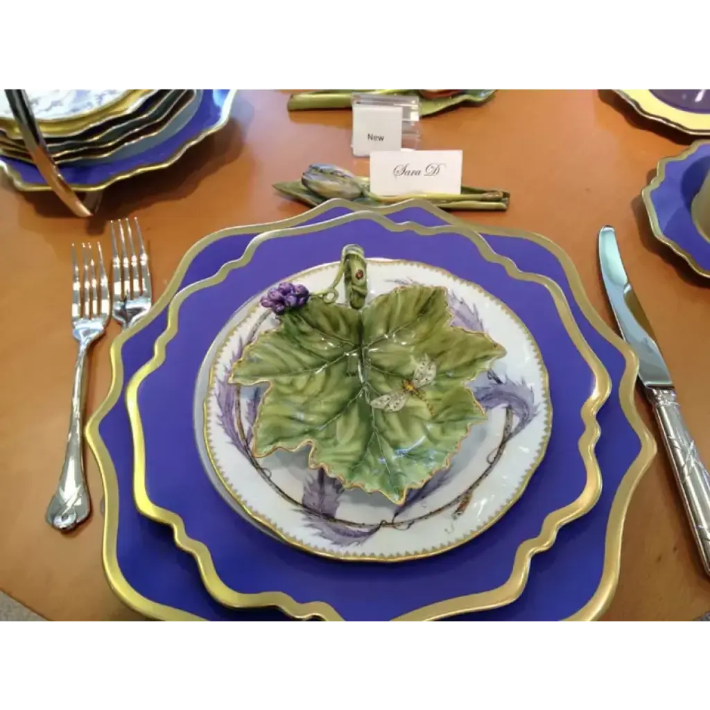 Accessorize your table settings with this beautiful Grape Leaf Dish by Anna Weatherley. It's perfect as a gift or for your own table. Anna Weatherley’s designs are based on botanical sketches from the 18th century as well as Dutch still-life paintings. At home, we find her pieces look just as good on our tables as they do on our walls. Fashion designer, socialite, and artist Anna Weatherley's signature style of butterflies, flowers, and botanical drawings is brought by artists in her factory in Budapest, Hungary. There, they hand-paint and decorate each piece to create a unique work of art that brings beauty to your home all year.