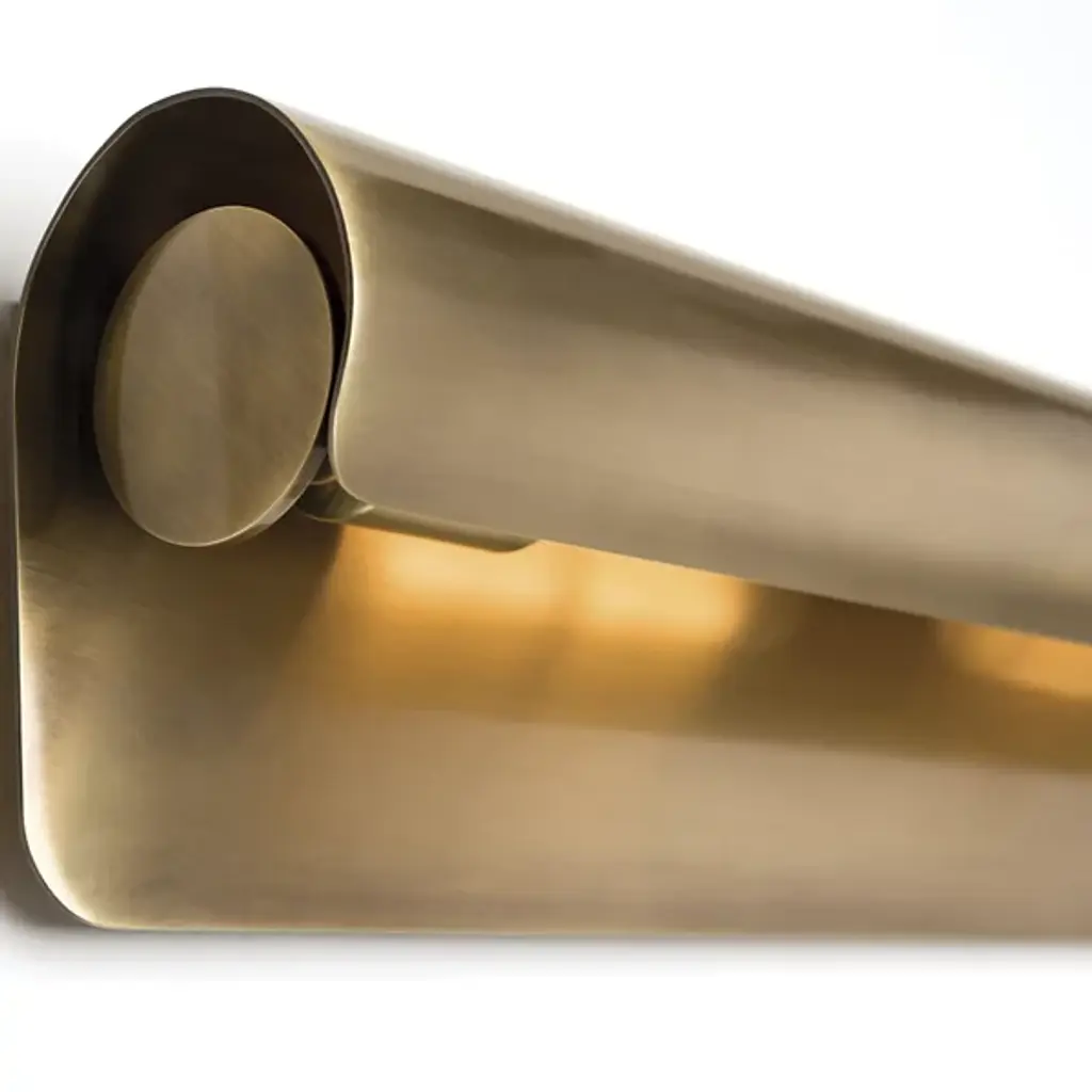 Reminiscent of an ancient scroll, the Hudson Valley Accord Vanity Light unravels the mysteries of bathroom lighting. Ambient light pours through the opening of the Metal shade, bringing a warm glow above a bathroom vanity mirror. Mount the Vanity Light horizontally or vertically to create a lasting impression in a powder room or master bath.