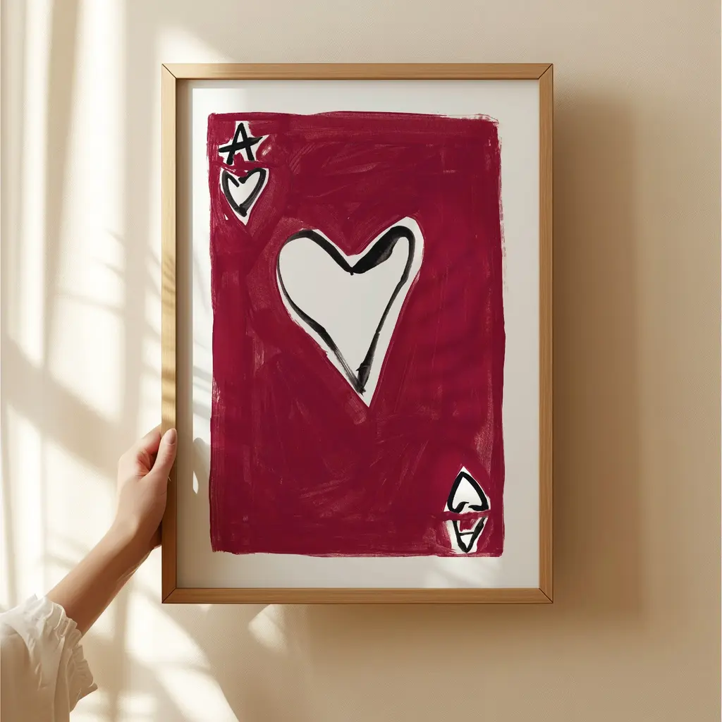 Ace of Hearts Hand Painted Art Print - A2Hand painted by Natalie and made into a beautiful print, this print is a perfect addition to any home decor. Smooth fine art 230 gsm matte card. Printed with vivid colour and detail. Sold without a frame.