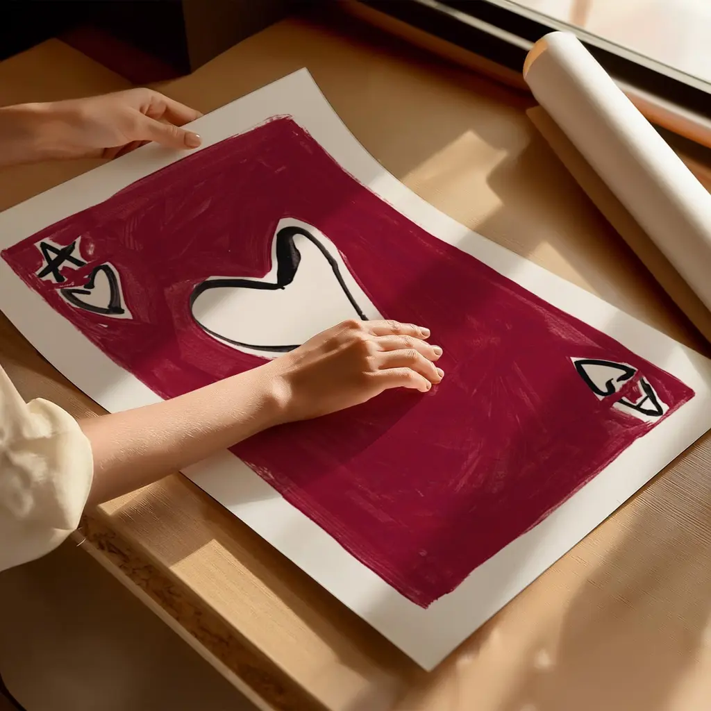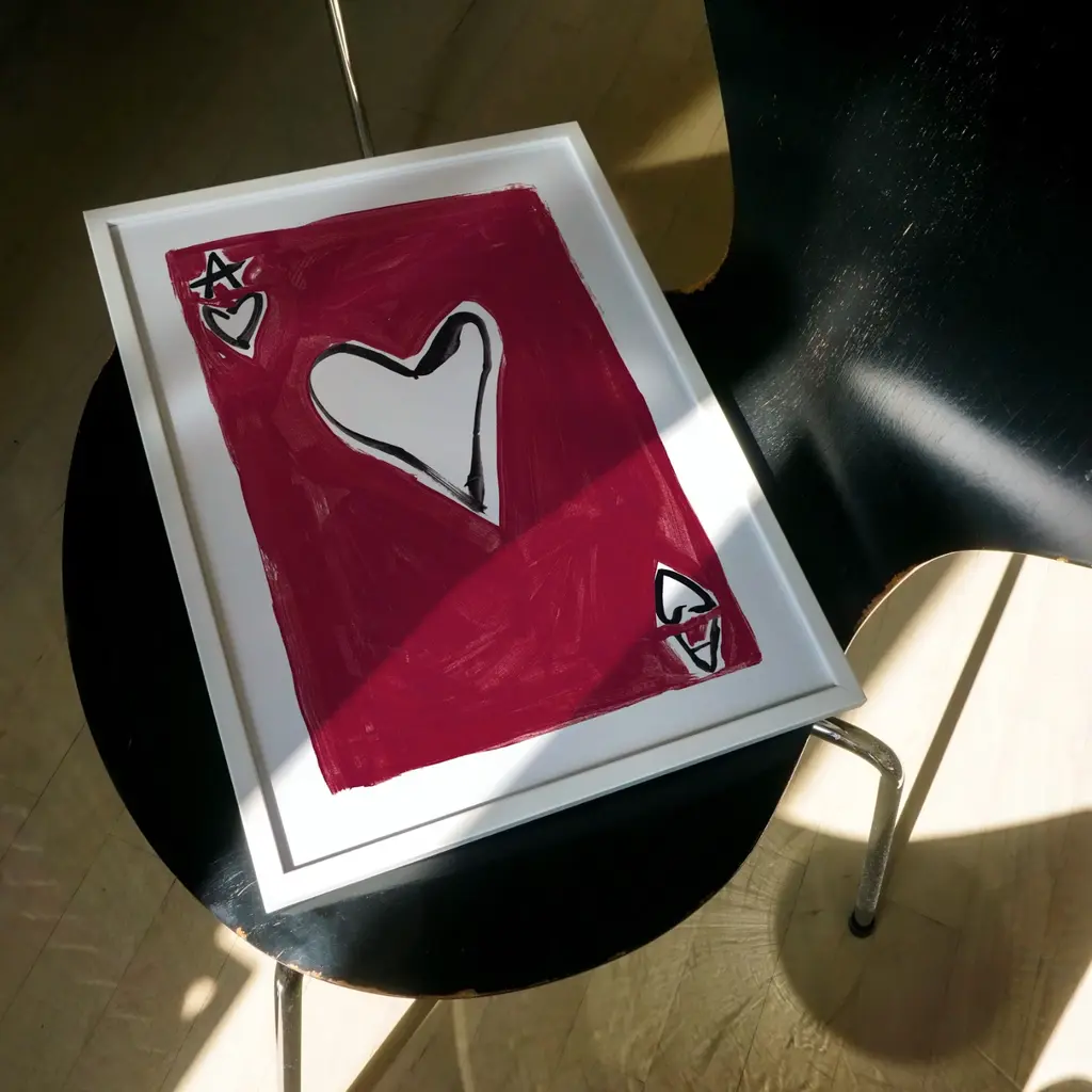 Ace of Hearts Hand Painted Art Print - A3Hand painted by Natalie and made into a beautiful print, this print is a perfect addition to any home decor. Smooth fine art 230 gsm matte card. Printed with vivid colour and detail. Sold without a frame.
