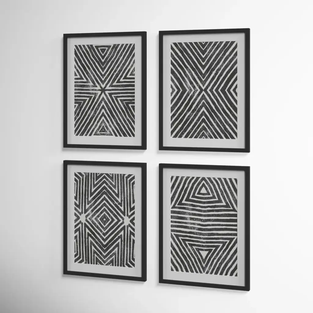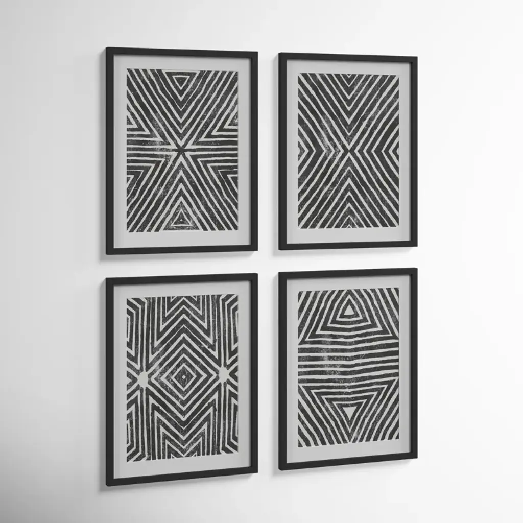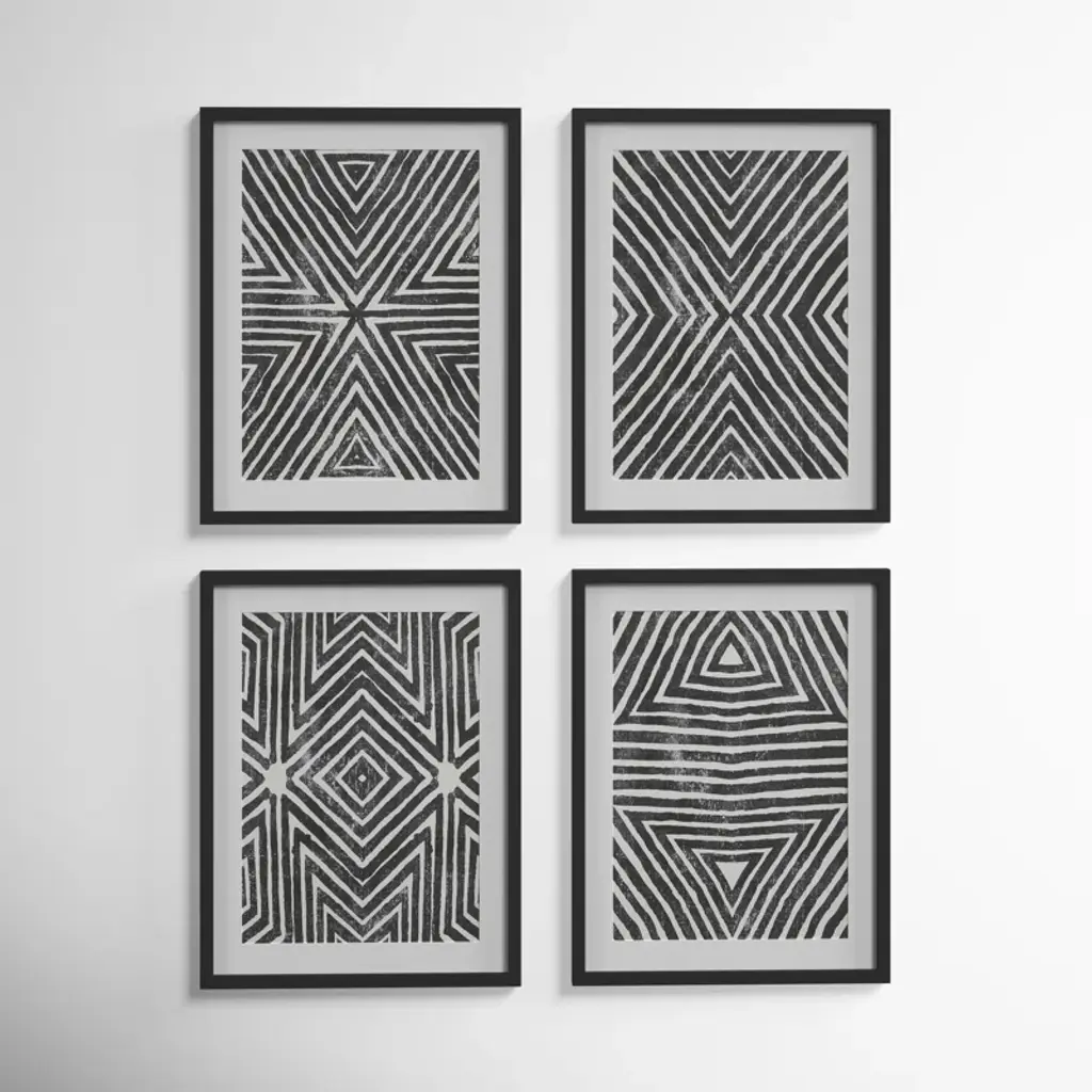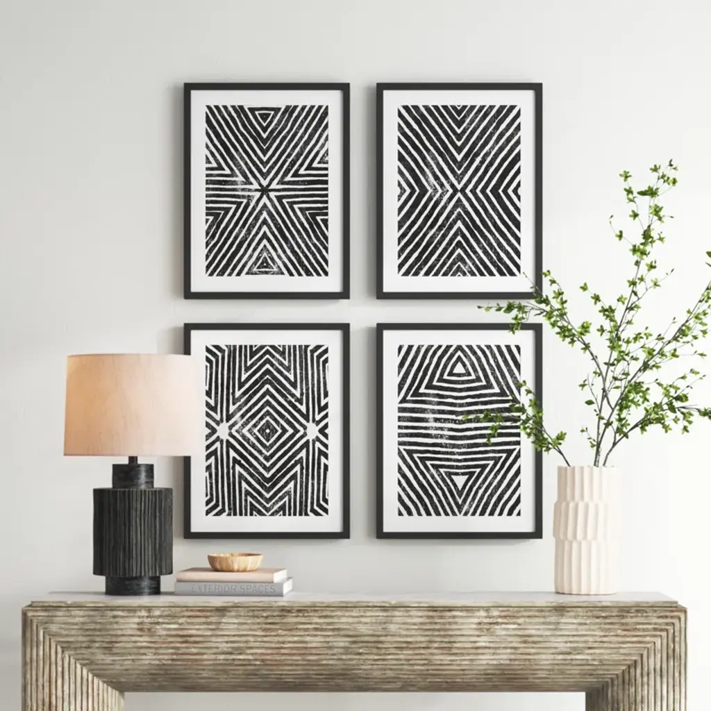Ready to curate your gallery wall? Start with this 4-piece set of painting prints, which each showcases a different symmetrical geometric design in black and white hues. We especially love how the mix of patterns and ink saturation give this set an effortlessly cool vibe that works in a range of spaces. Plus the simple color palette adds dimension and visual intrigue to your office, living room, or bedroom without overwhelming your decor, and each print is set in a minimal black frame for a polished finishing touch.