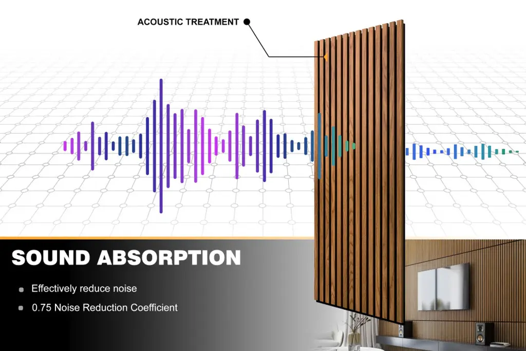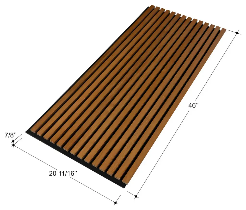 MODERN & ECO-FRIENDLY DESIGNOur acoustic wood panels have a modern and innovative design. They consist of real oak-veneer MDF slats, and they are backed with a sound-absorbing acoustic felt made from recycled materials, reflecting our commitment to eco-friendly products. Each wood panel pair measures 46" x 20 11/16" x 7/8" and can be seamlessly joined together to create a professional-looking wood slat wall for DIY enthusiasts.EASY INSTALLATION FOR VERSATILITYInstalling slat wall panels is easy and doesn''t require advanced skills. They can be installed on vertical walls, ceilings, alcoves, around windows, and even on curved surfaces. The backing felt, which provides sound absorption properties, is made from recycled materials, aligning with our goal of promoting sustainability.SUSTAINABLE SOUND ABSORPTIONThese acoustic wood panels are suitable for various settings, including homes, offices, and public spaces. With basic DIY skills, you can enhance the aesthetics and sound quality of any room. They are ideal for music studios, conference rooms, movie theaters, home theaters, instrument practice rooms, and gaming rooms. The wood wall panels offer efficient and effective sound absorption.STYLISH & EFFECTIVE ACOUSTIC WOOD PANELSIn residential properties, rooms often rely on curtains, carpets, and soft furnishings to reduce echoes and create a cozy atmosphere. However, if you prefer tiled floors and minimal soft furnishings while still seeking style and innovation, our slat wall panels are the perfect solution. They provide warmth and welcoming sound for every room, ensuring a pleasant and enjoyable environment.