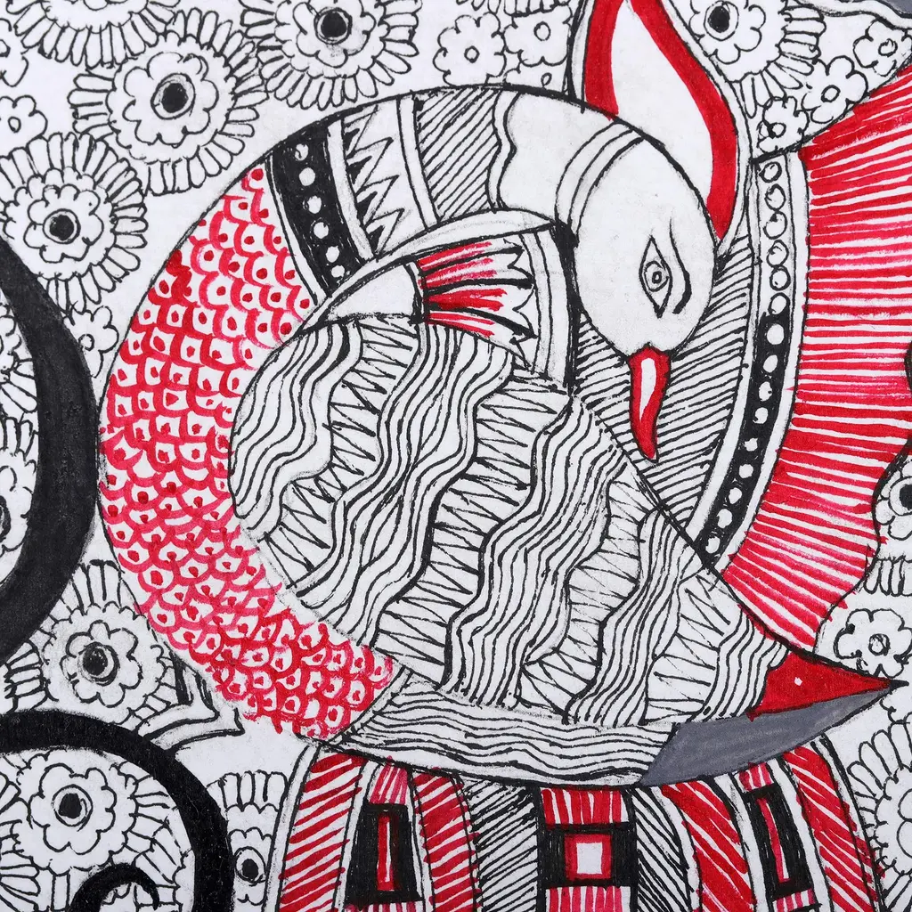 Acrylic And Ink On Cotton Paper Peacock Madhubani Art- Majestic Peacock