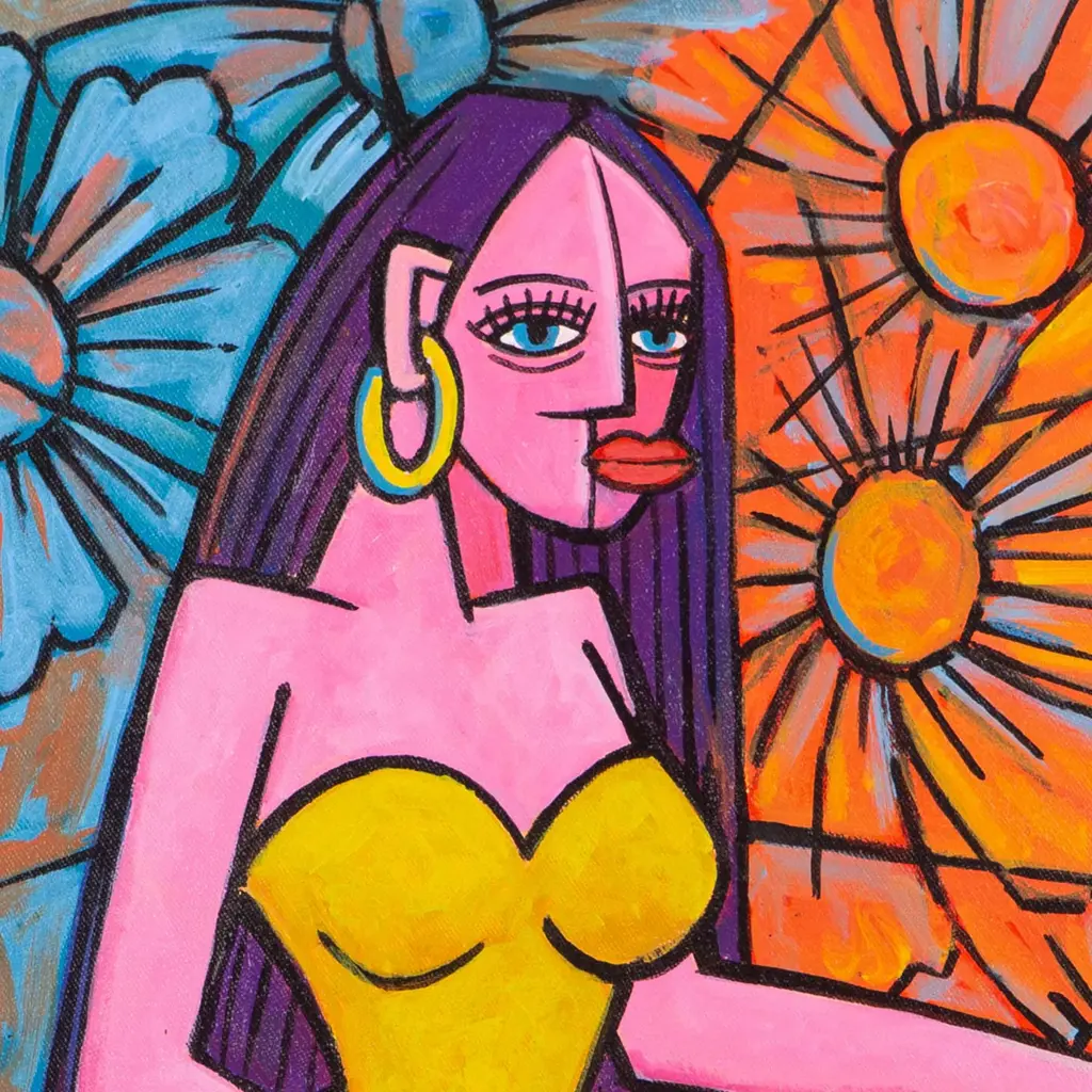 Acrylic Figure Painting With Floral Motif- Ni Wayan Rukma