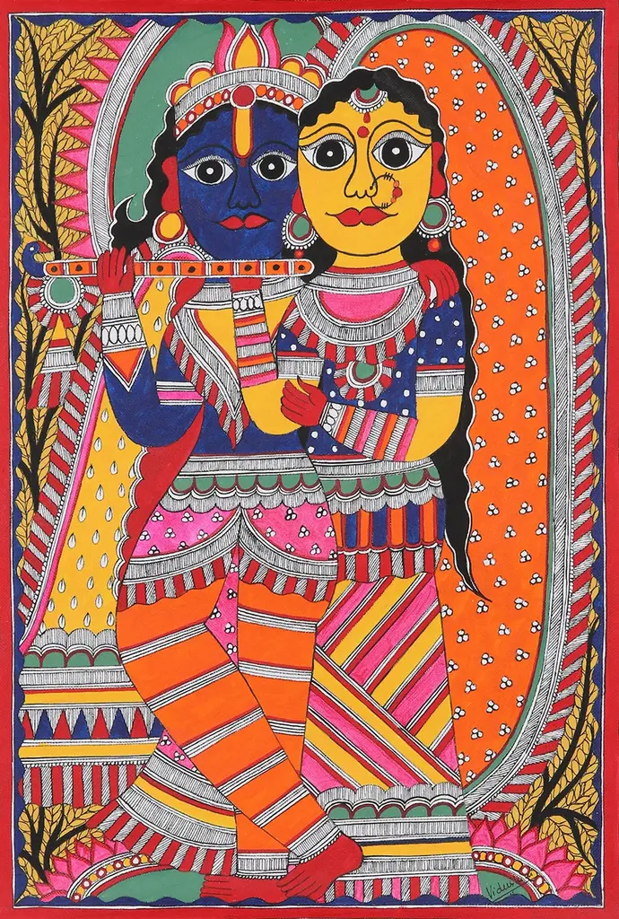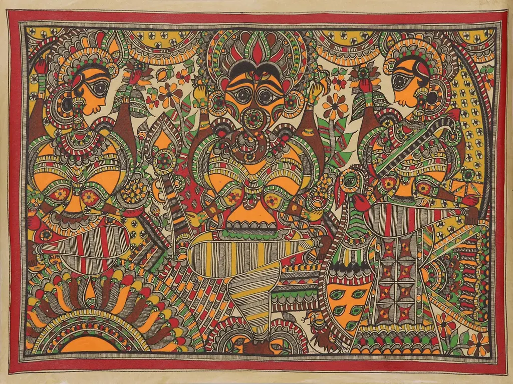 Acrylic Madhubani Painting On Handmade Paper- Saraswatis Song