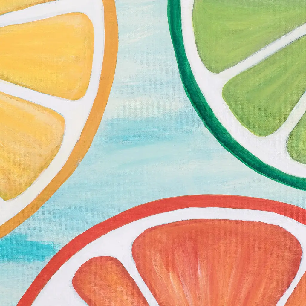 Acrylic On Canvas Painting Of Lemon Orange And Lime- Citrus Colors Harmony