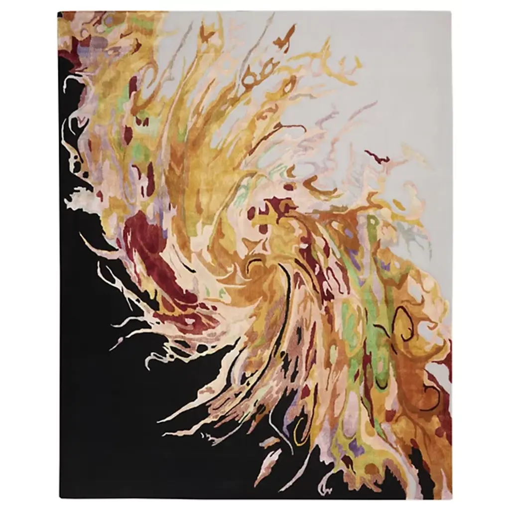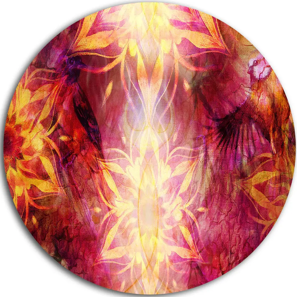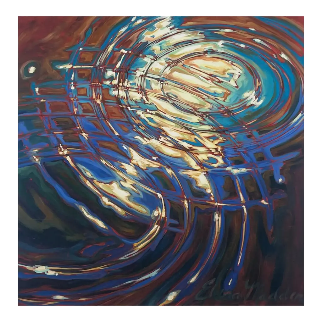 A substantial and period, action abstract showing concentric forms in coral and saffron over a variegated parchment ground. Signed lower right, 'G. Fernandez', titled, 'Mani' and dated April, 1975.