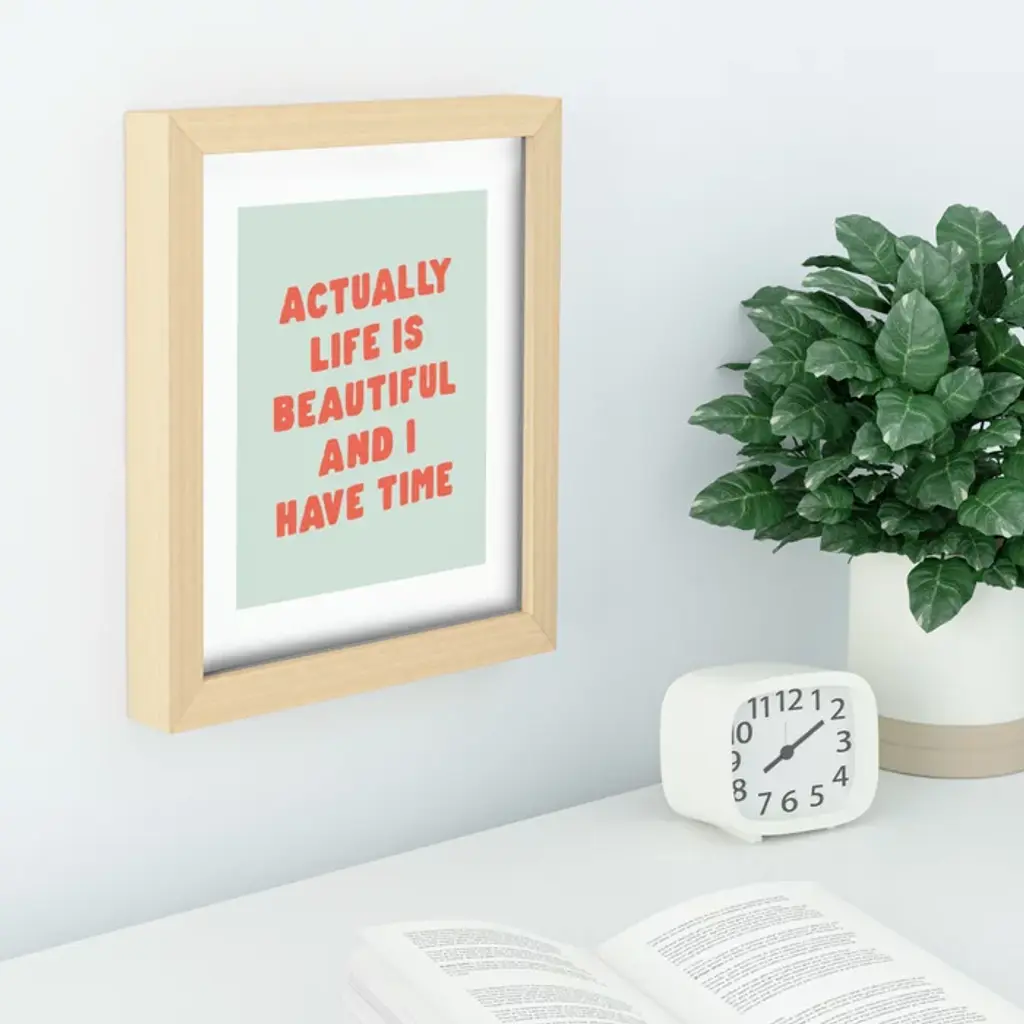 Actually Life Is Beautiful And I Have Time Typography Print In Pastel Green And Red Art Print