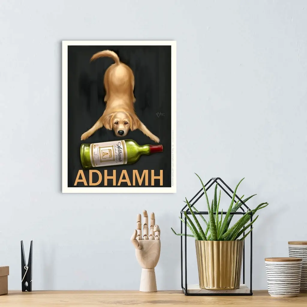 Retro style advertising poster featuring Golden Retriever with Scottish Whisky