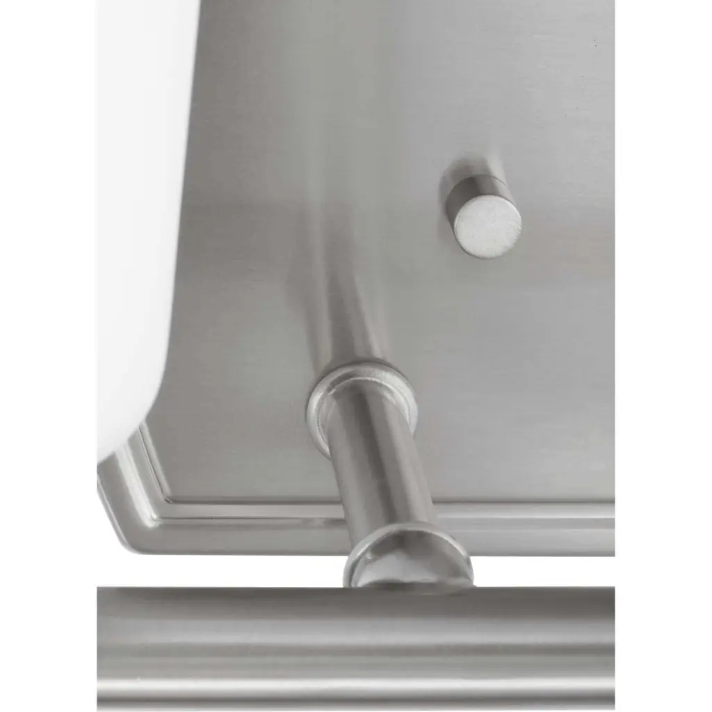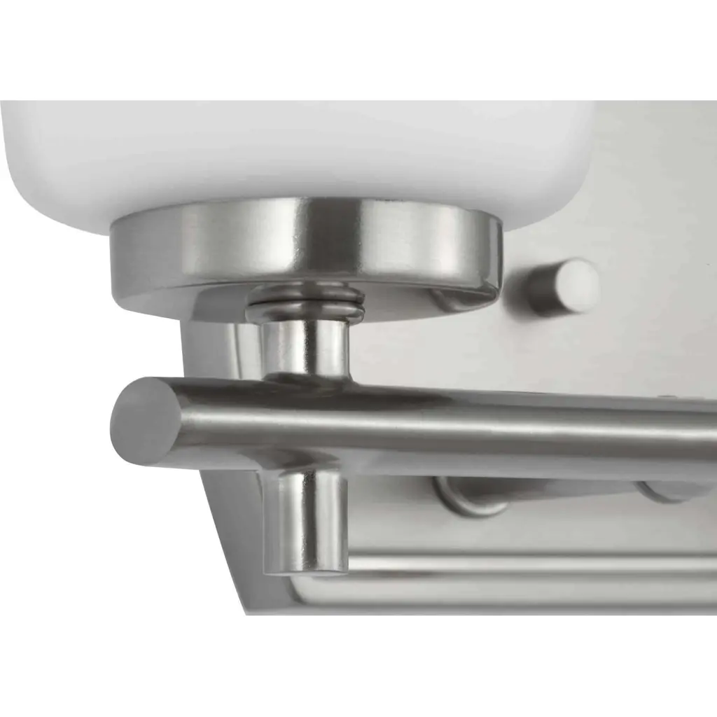 Fundamentally modern but with a traditional twist, the Adley vanity light combines opal glass shades with a curved edge backplate and a simple, straight bar finished in soft brushed nickel. This light is an elegant choice for illuminating new traditional and transitional settings.