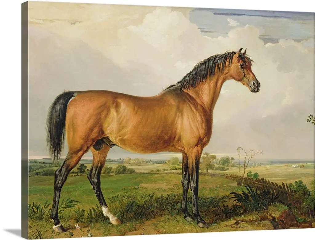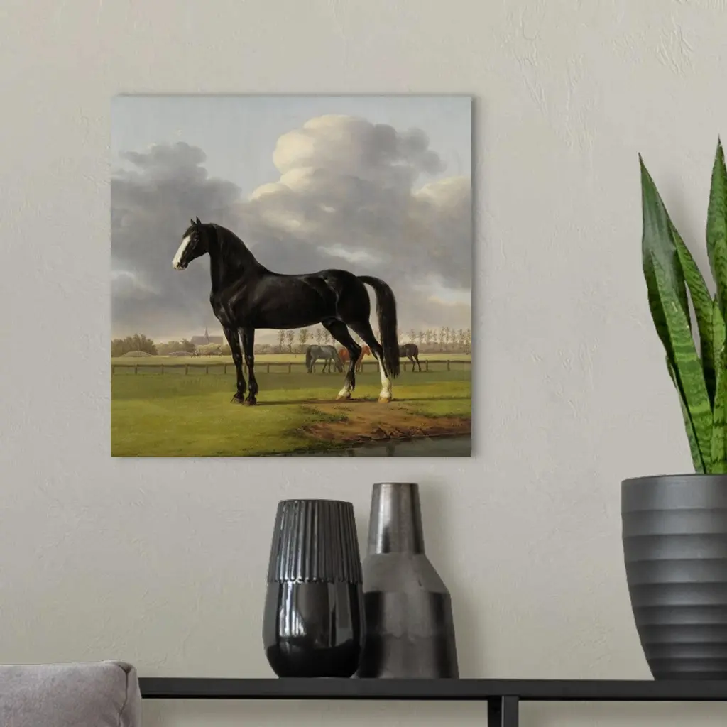 Adriaan van der Hoop's Trotter 'De Vlugge' (The Fast One) in a Meadow, Anthony Oberman, 1828, Dutch painting, oil on canvas. Adriaan van der Hoop was a wealthy banker, art collector and adopted elements of English equine culture, such as commissioning portraits of his horses.
