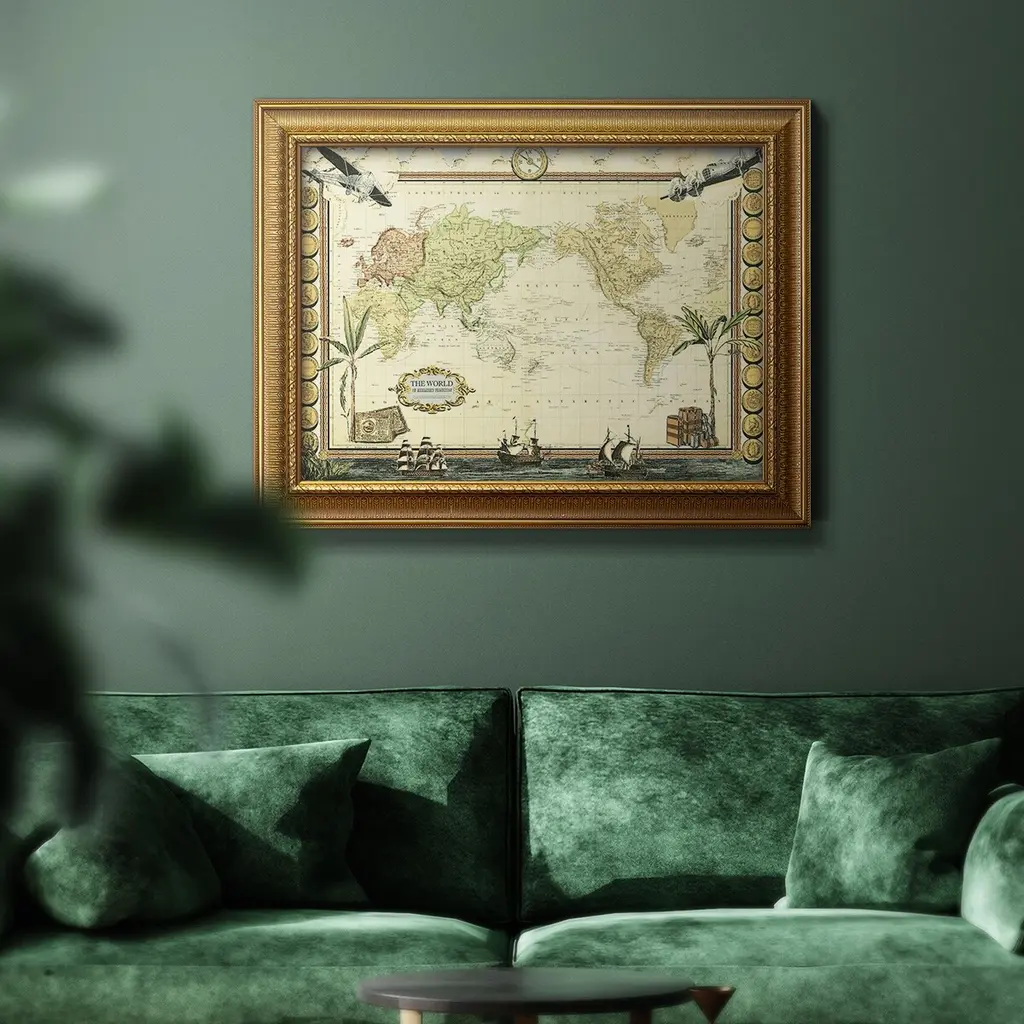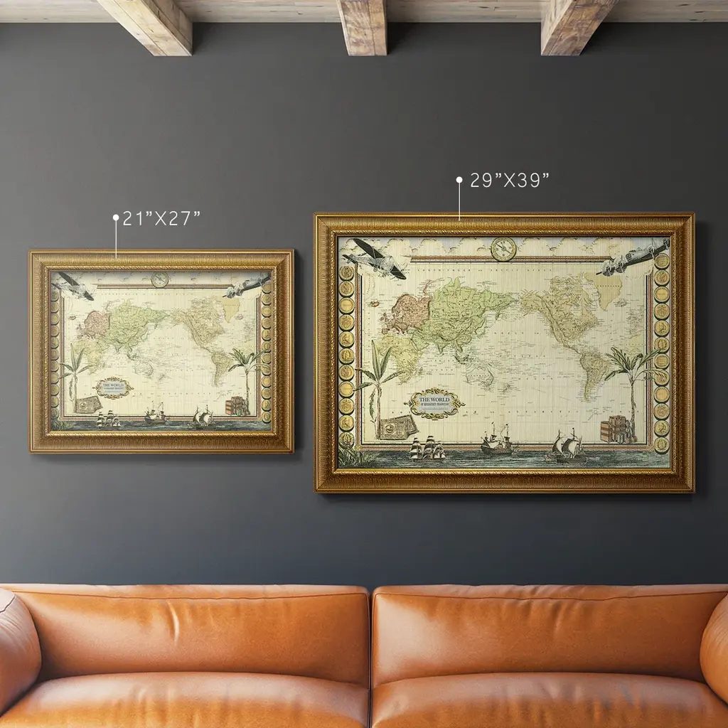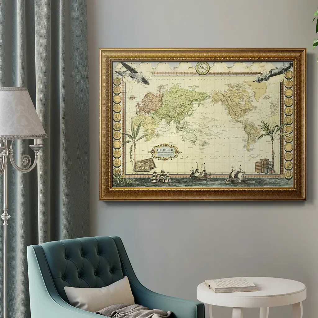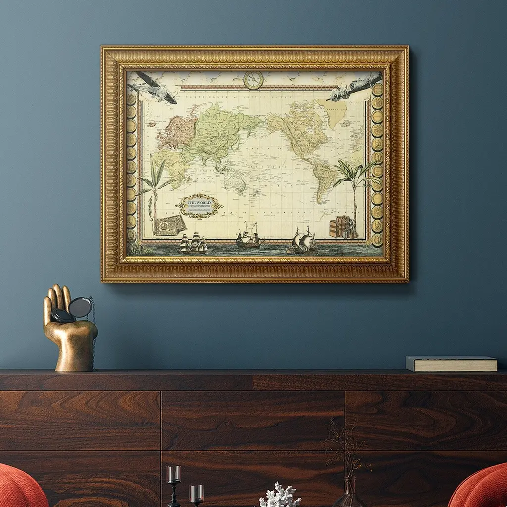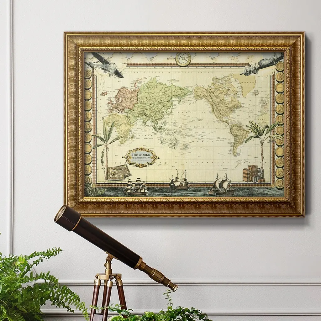 Adventure Map Premium Framed Canvas- Ready To Hang - 16x20 - Gold