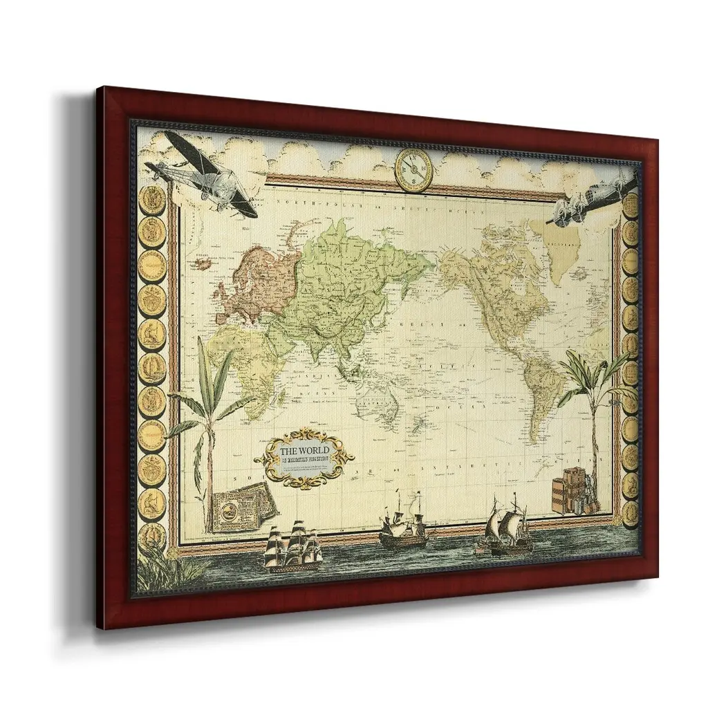 Adventure Map Premium Framed Canvas- Ready To Hang - 16x20 - Mahogany