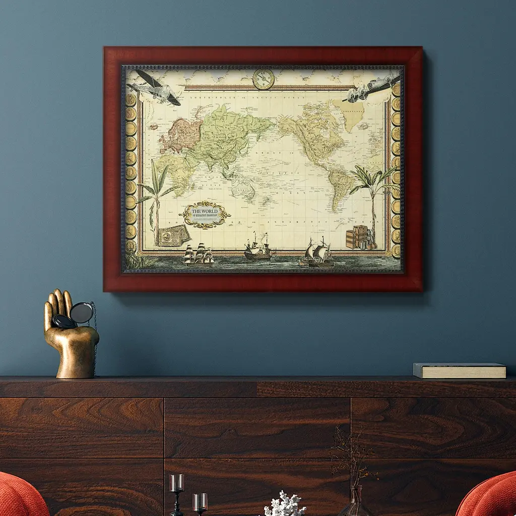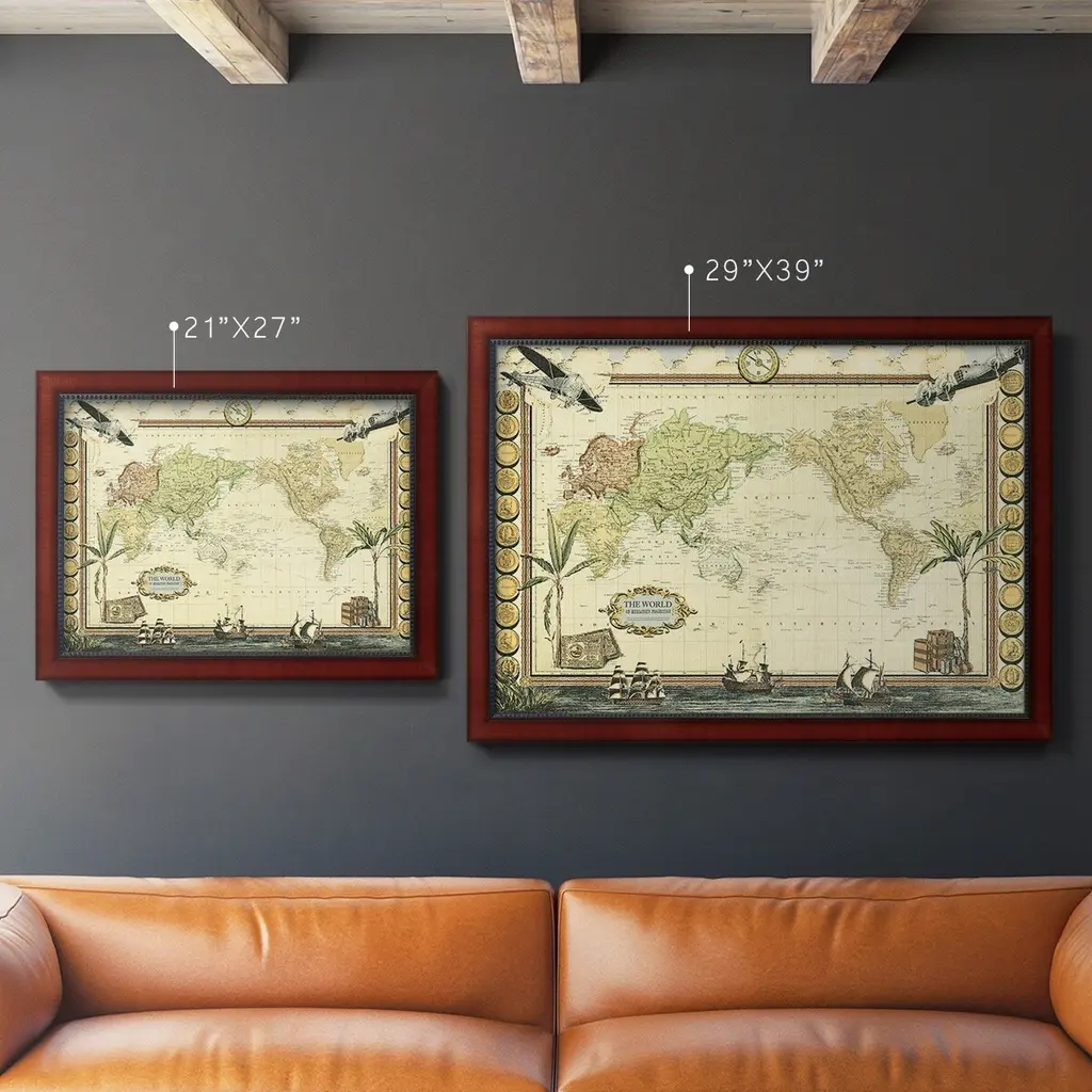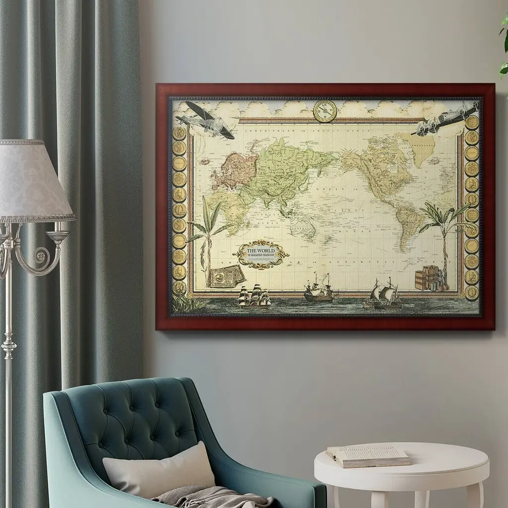 Adventure Map Premium Framed Canvas- Ready To Hang - 24x36 - Mahogany