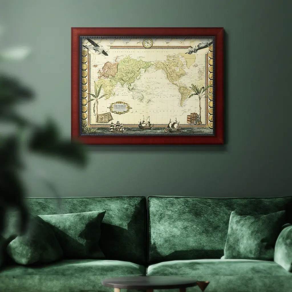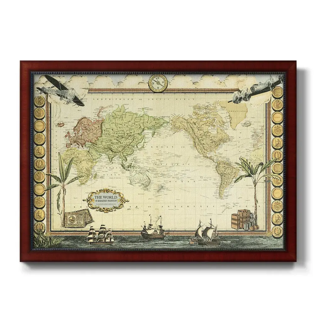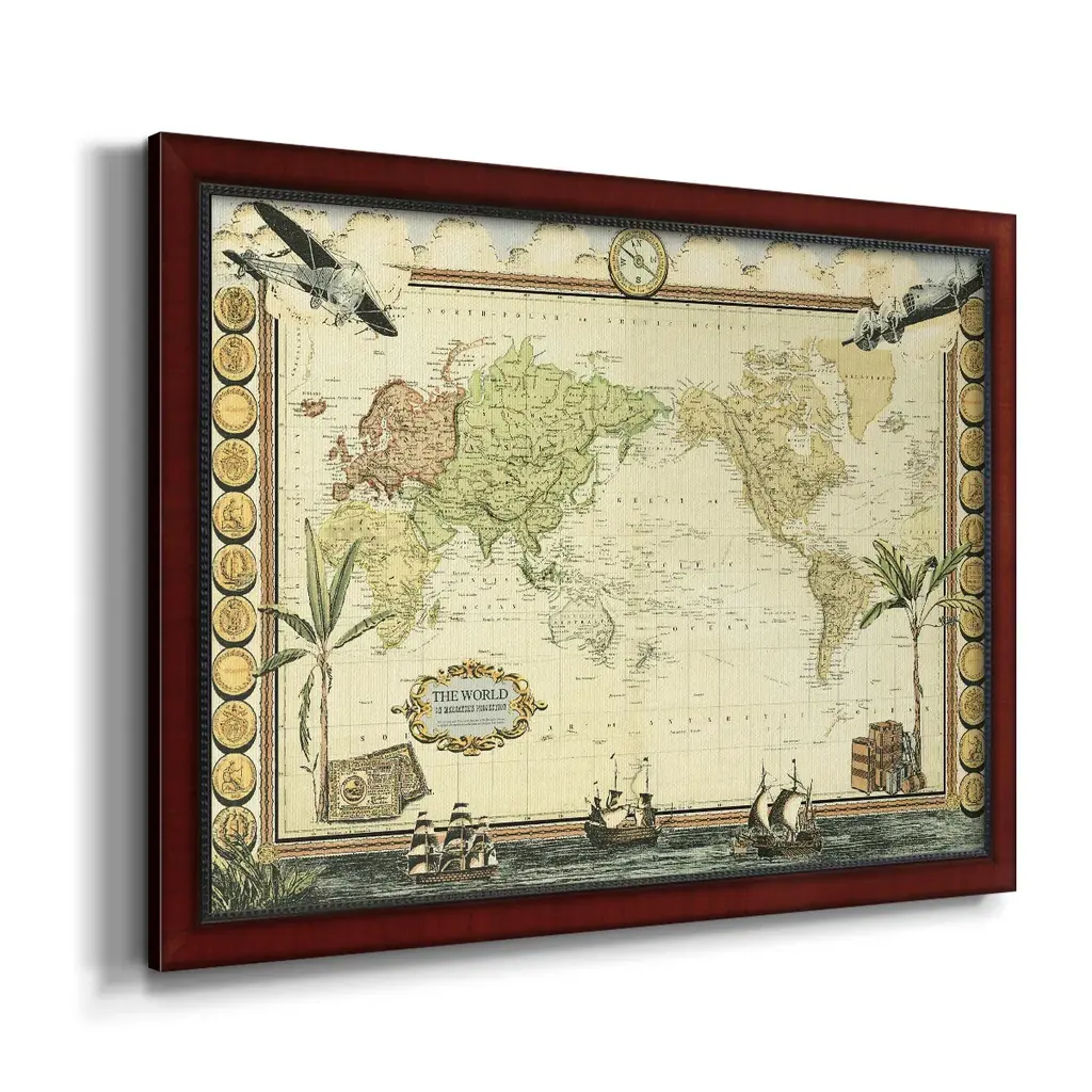 Adventure Map Premium Framed Canvas- Ready To Hang - 24x36 - Mahogany