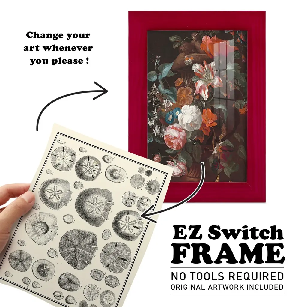 Aegean Collection II -EZ SWITCH Framed Print w/glass-Cherry Red A delightful, framed print. Featuring a solid wood frame with real wood glass. This premium print is giclee quality. In addition, every frame features a removable back and table top stand. This allows you to change your art in the future or to just stand the art on a table for a new look. We are sure you'll enjoy our new series of EZ SWITCH Framed Art. Solid Wood Frame Real Glass Removable / Replaceable Art Built in Tabletop Stand Sizes range from 4x6 up to 12x15 - buy just one or pair them up as sets as you see fit.