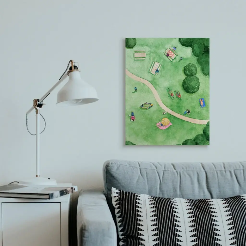 Aerial Park Fun Watercolor Summer Friends Painting,1pc, Each 24 X 30