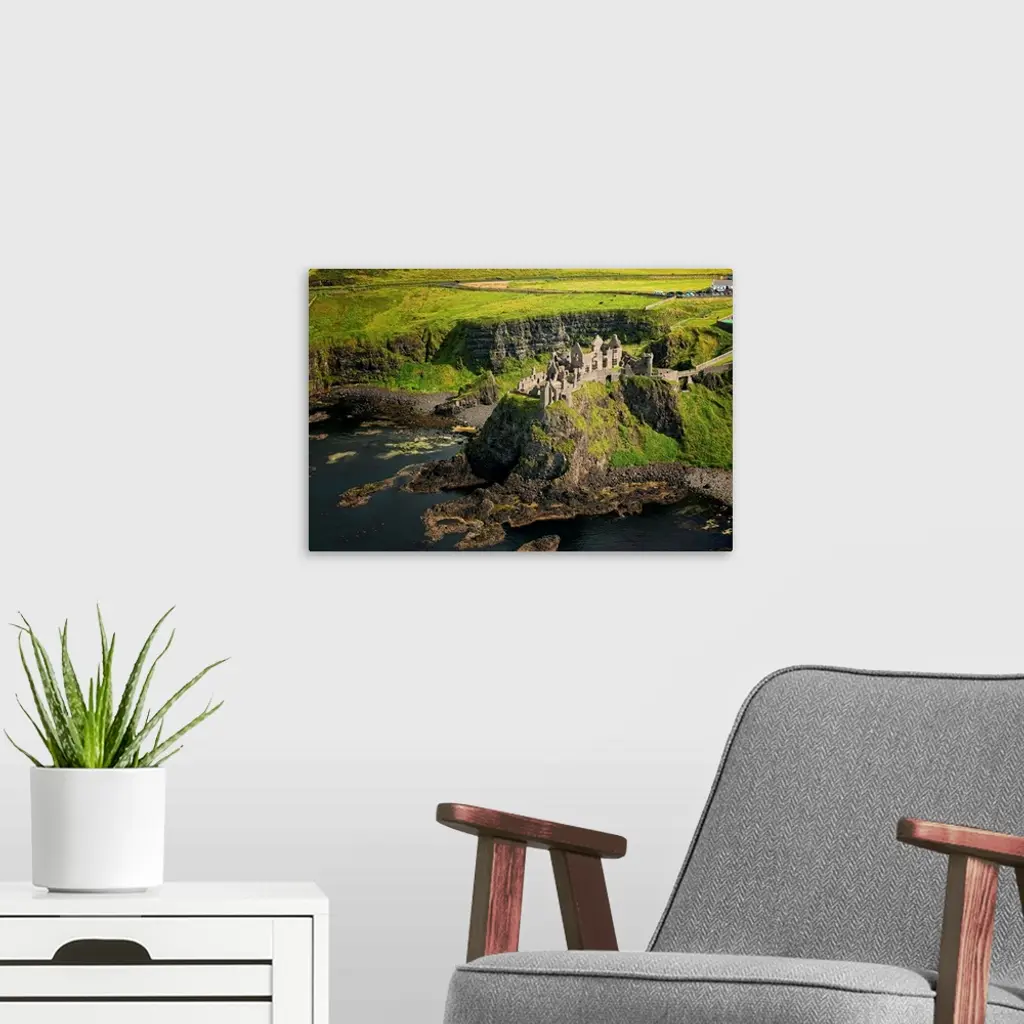 Aerial View Dunluce Castle, Northern Ireland - Aerial Photograph wall art for home and office decor. Discover canvas art prints, photos, mural, big canvas art and framed wall art in GreatBigCanvas.com's varied collections.
