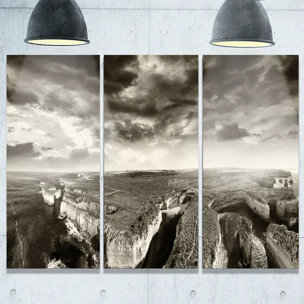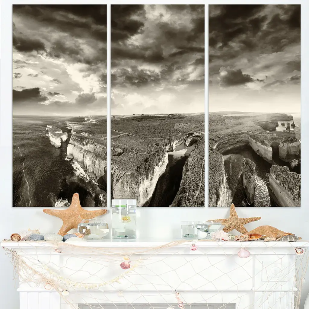 "Aerial View Of Ocean Road Black" Metal Wall Art, 3 Panels, 36"x28"