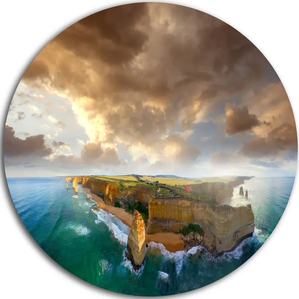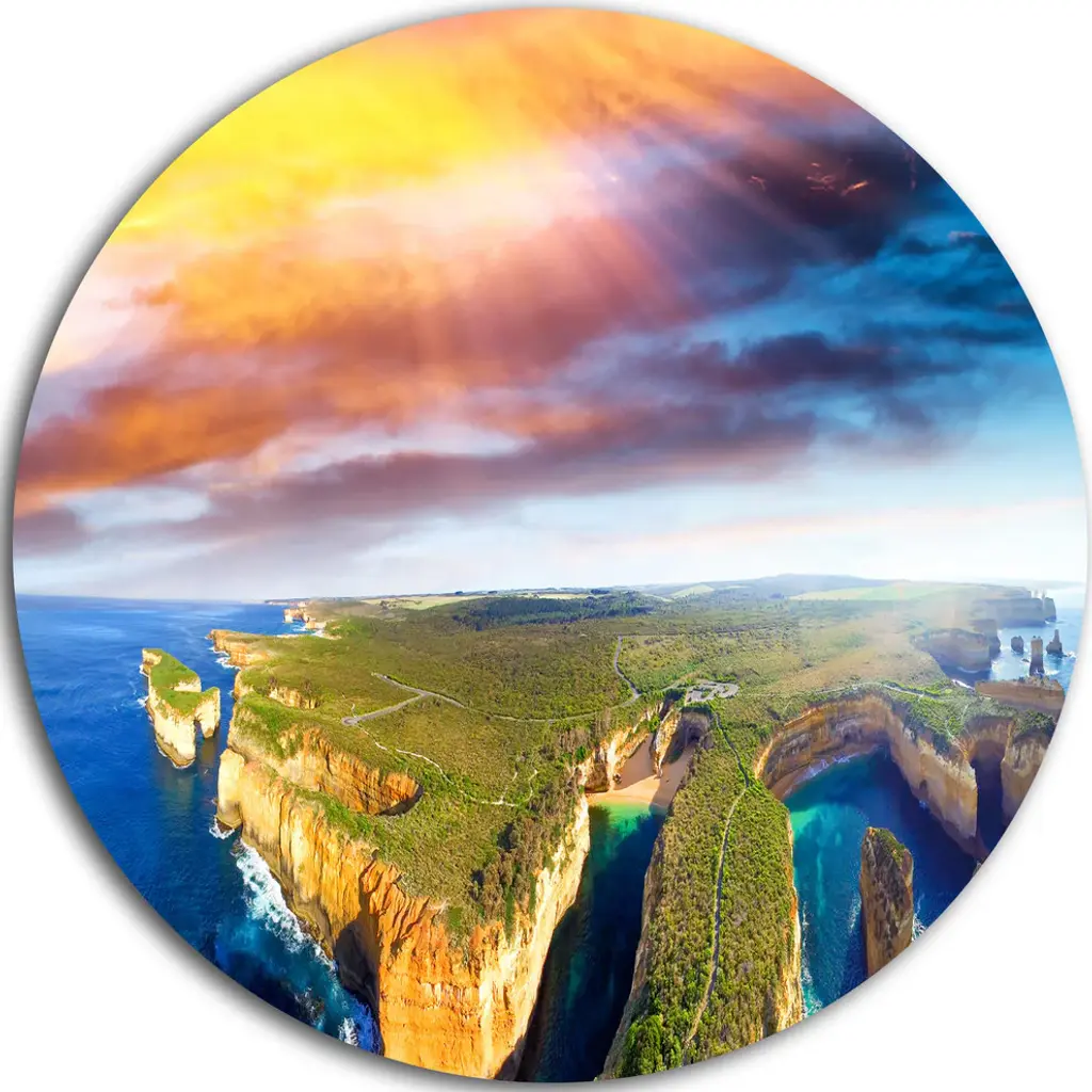 Bring Contemporary Abstraction to your home with this large Circle Metal wall art. This Aerial View of Ocean Road Black Metal Artwork makes it the focal point of any room or office. - White Gloss Coating ensures colors are extra vibrant with light reflection.- Aluminum grade Sheet Metal with 1 inch mounting frame on the back giving the illusion that the artwork is floating on the wall..- Mounting Brackets are included along with instructions.- High Quality Digital images are created directly into a glossy aluminum panel producing a stunning and captivating print into the glossy finish of the metal.- Water, Fire and Scratch resistant HD Aluminum panels.- Looks better than any photo paper and guaranteed to last at least 20 years- Easy to clean with a microfiber cloth. Colors are far superior to regular Canvas Art. - Easy to Hang