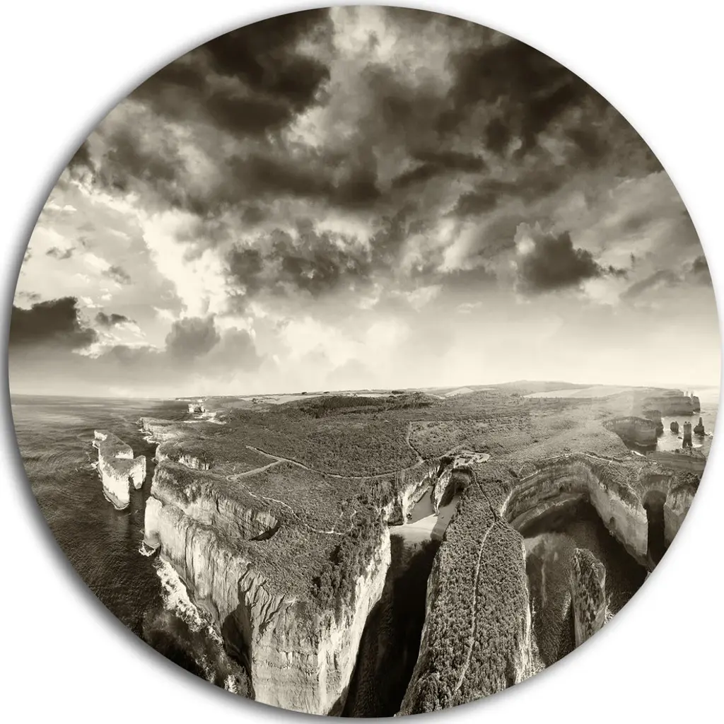 Aerial View Of Ocean Road Black, Seascape Large Disc Metal Artwork, 23"