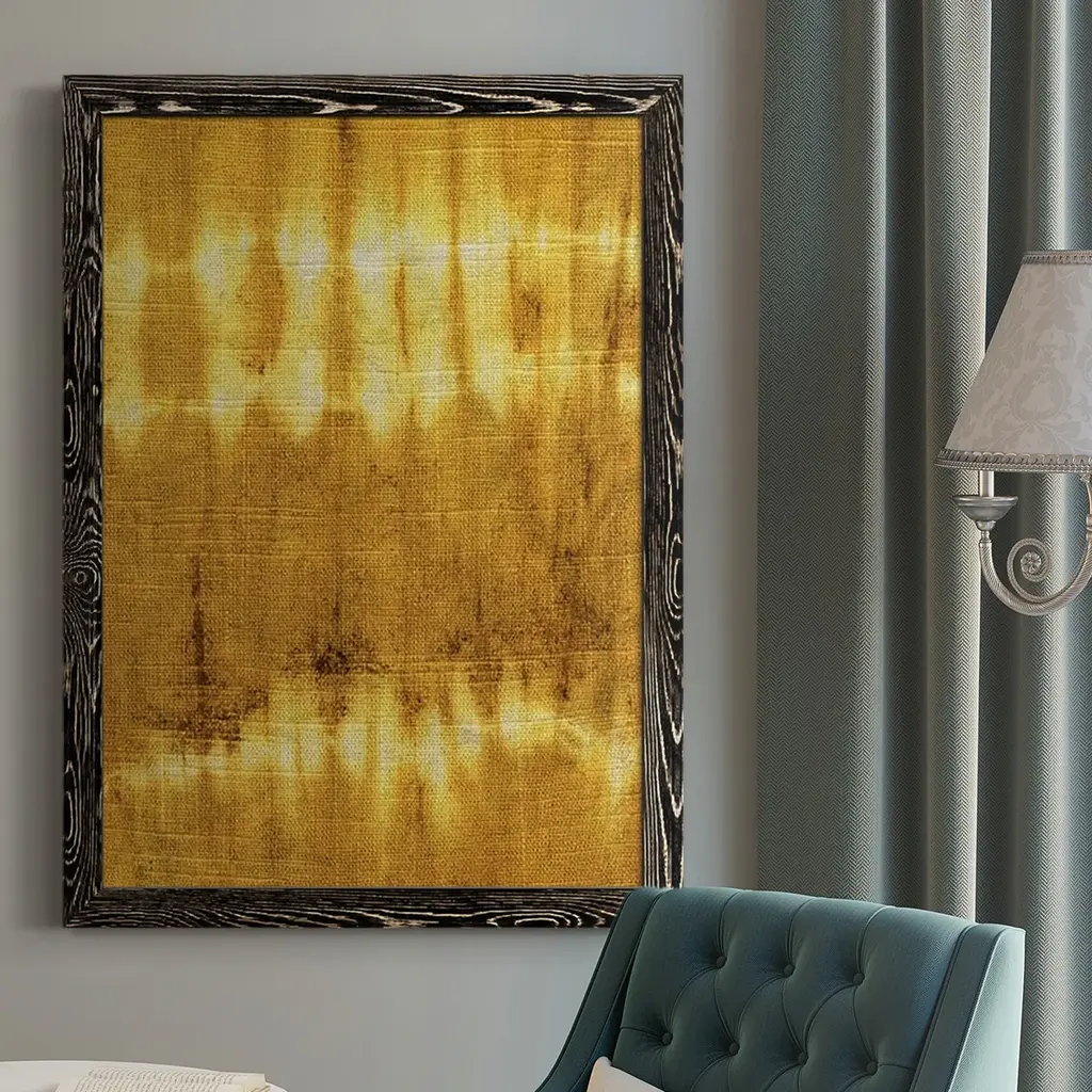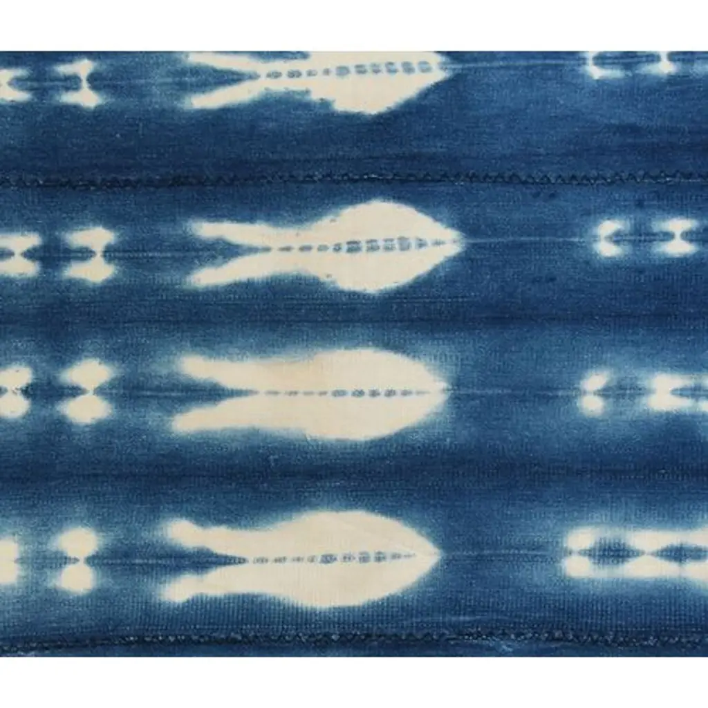 Custom-framed vintage blue and white nautical fish African textile remnant from Mali displayed in a gold frame under non-glare Plexiglass. One-of-a-kind. Included are the new gold wood frame and hanging hardware/wire. Textile, very good condition with wear consistent with age and use; frame, new excellent unused condition. *** I have two available...each will be unique and one-of-a-kind. Both were created from the same textile remnant and will be very similar.