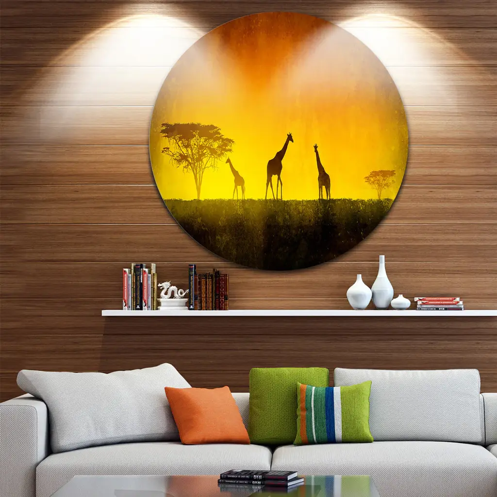 African Sunset Aura, Landscape Large Disc Metal Wall Art, 23"