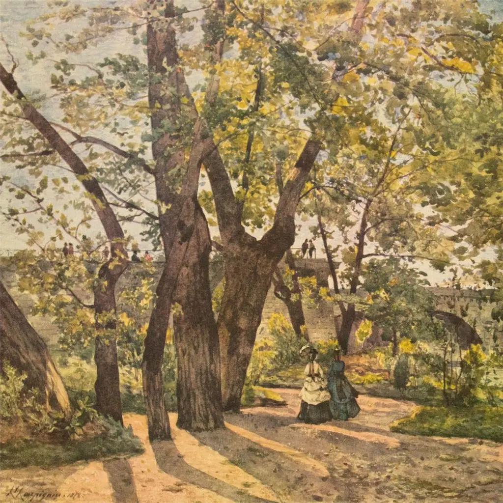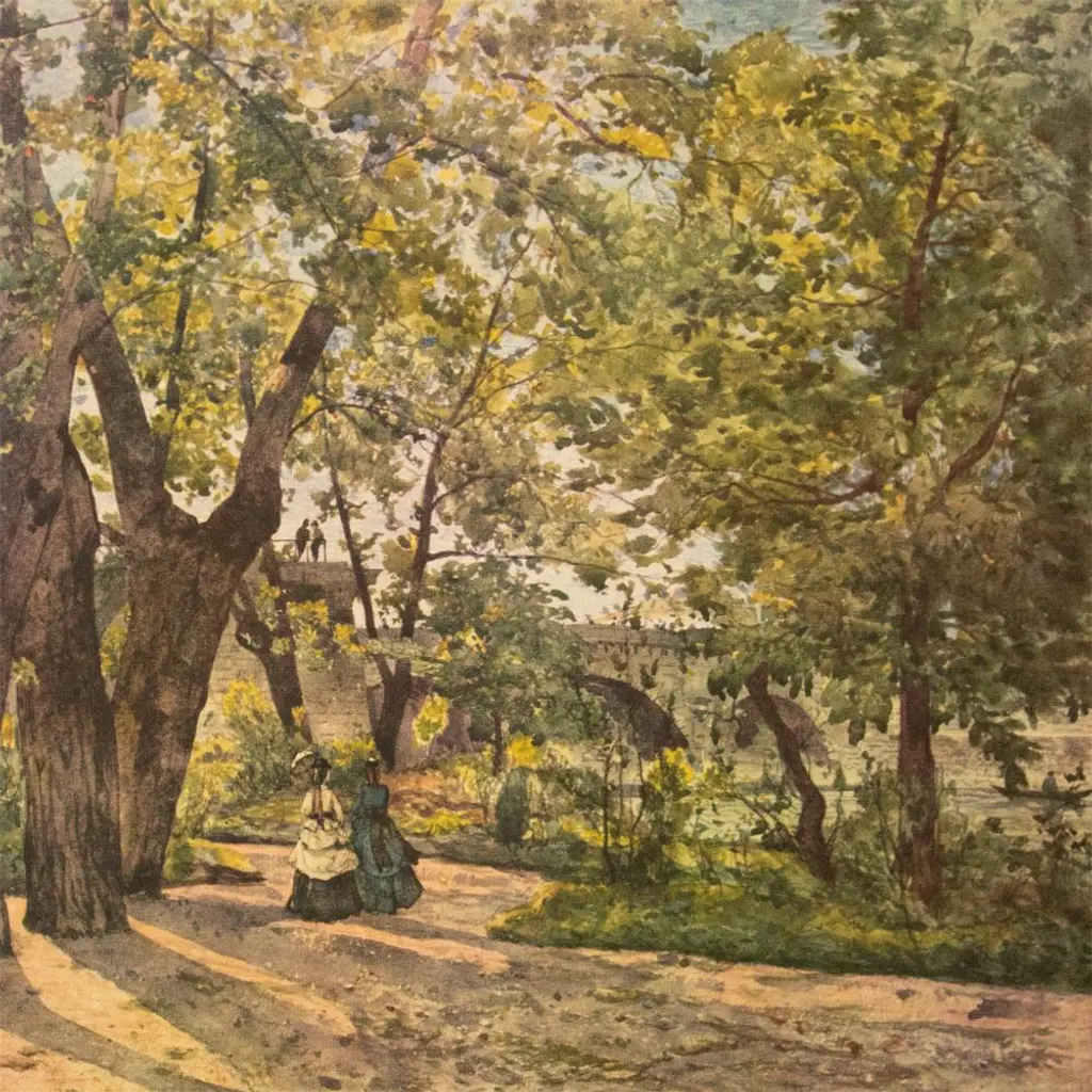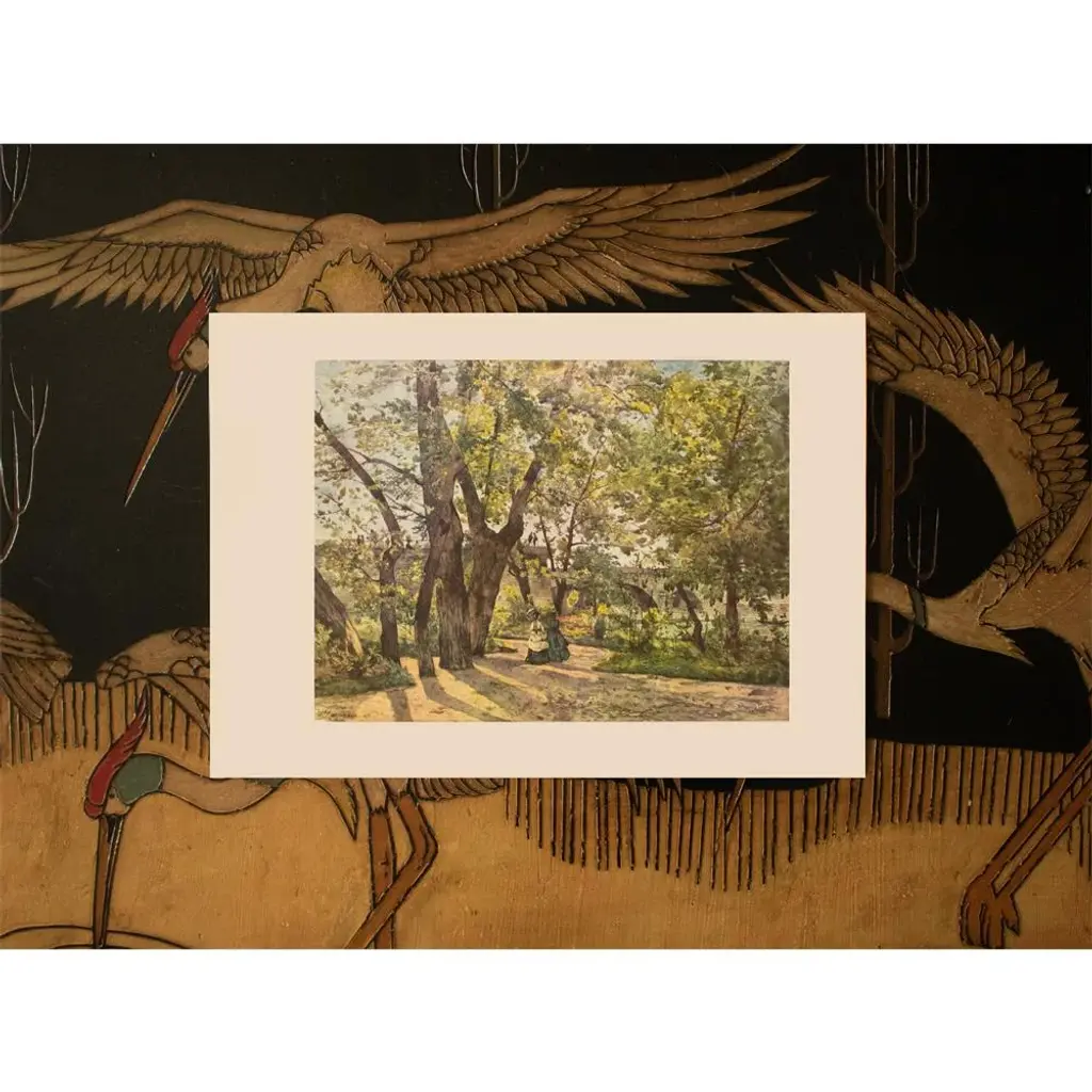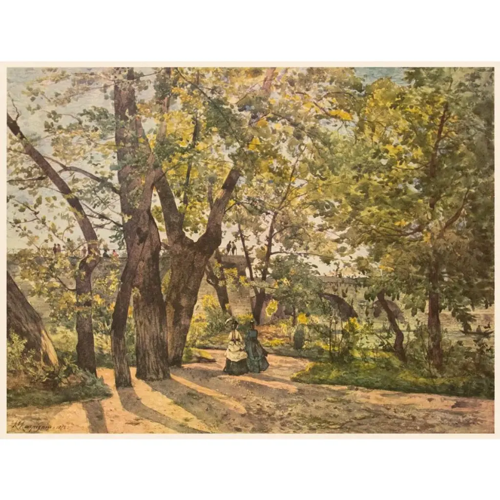 A beautiful rare large Cottage Style vintage print of watercolor "View of Paris" by French landscape painter Henri-Joseph Harpignies. Comes from a rare First and Only Edition art book published in Budapest, Hungary in 1959. Printed on one side of high quality heavy paper. Signed in the print: "H. Harpignies 1872". The artist's name ia printed on the back. Very detailed and realistic and gives a feel of a watercolor. Beautiful colors. Excellent condition - never framed. Image 11.15"W x 8.35"H