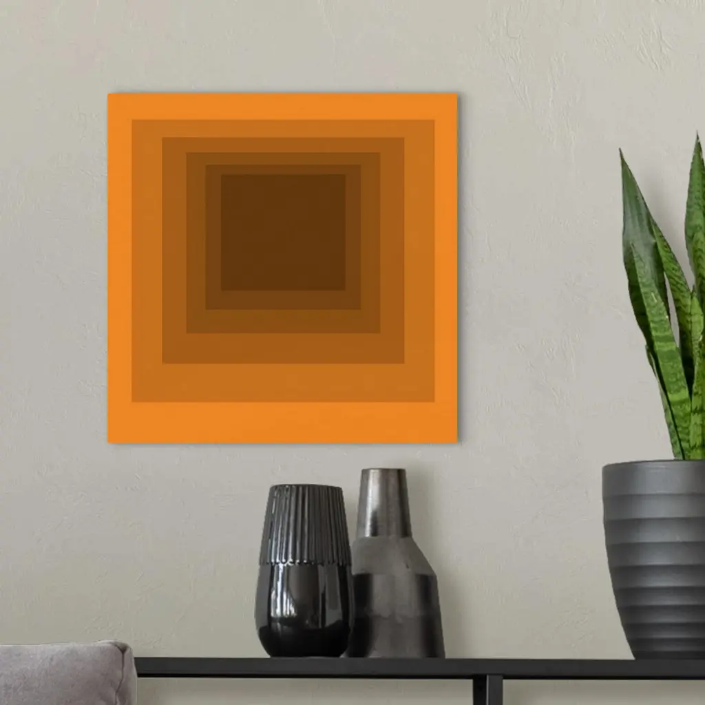 Square, oversized contemporary artwork of concentric squares, getting smaller and darker as they near the center of the image, creating perspective, as if looking down a tunnel.