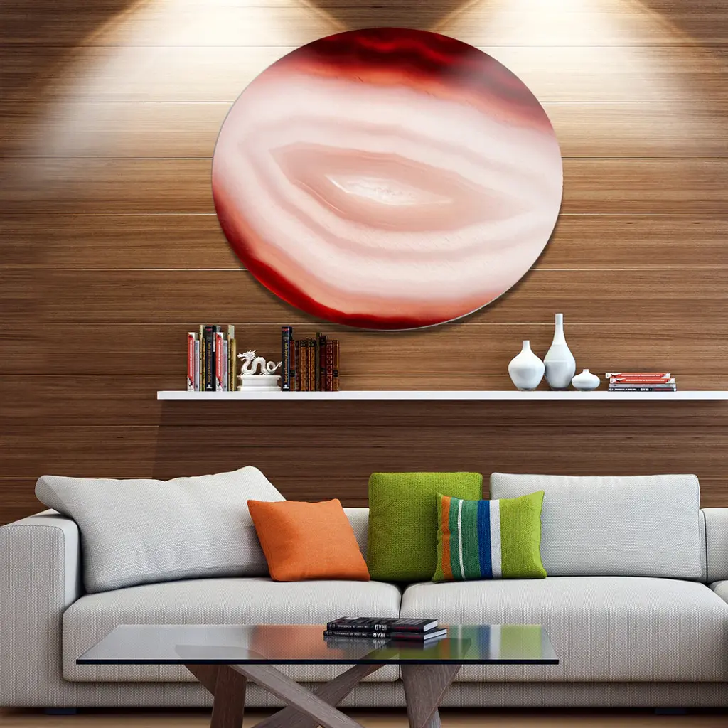 Bring Contemporary Abstraction to your home with this large Circle Metal wall art. This Agate with Chalcedony Geological Crystal Metal Artwork makes it the focal point of any room or office. - White Gloss Coating ensures colors are extra vibrant with light reflection.- Aluminum grade Sheet Metal with 1 inch mounting frame on the back giving the illusion that the artwork is floating on the wall..- Mounting Brackets are included along with instructions.- High Quality Digital images are created directly into a glossy aluminum panel producing a stunning and captivating print into the glossy finish of the metal.- Water, Fire and Scratch resistant HD Aluminum panels.- Looks better than any photo paper and guaranteed to last at least 20 years- Easy to clean with a microfiber cloth. Colors are far superior to regular Canvas Art. - Easy to Hang