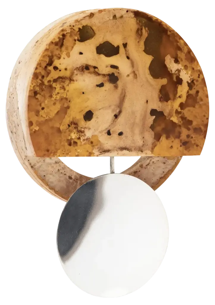 Artwork by Janet Van Arsdale printed with UV inks to high quality 1/8" thick brushed aluminum Dibond with a gloss UV/Anti-graffiti coating. 4 holes drilled for standoff hardware. Signature in the image. Includes Set of 4 1"D x 1"H Barrel aluminum stando
